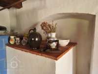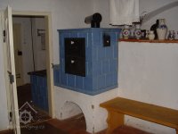 Kachlový sporák částečně v černé kuchyni a částečně ve světnici, 2012, © Šimek, (Prvky na obrázku: topeniště, kamna, pec)