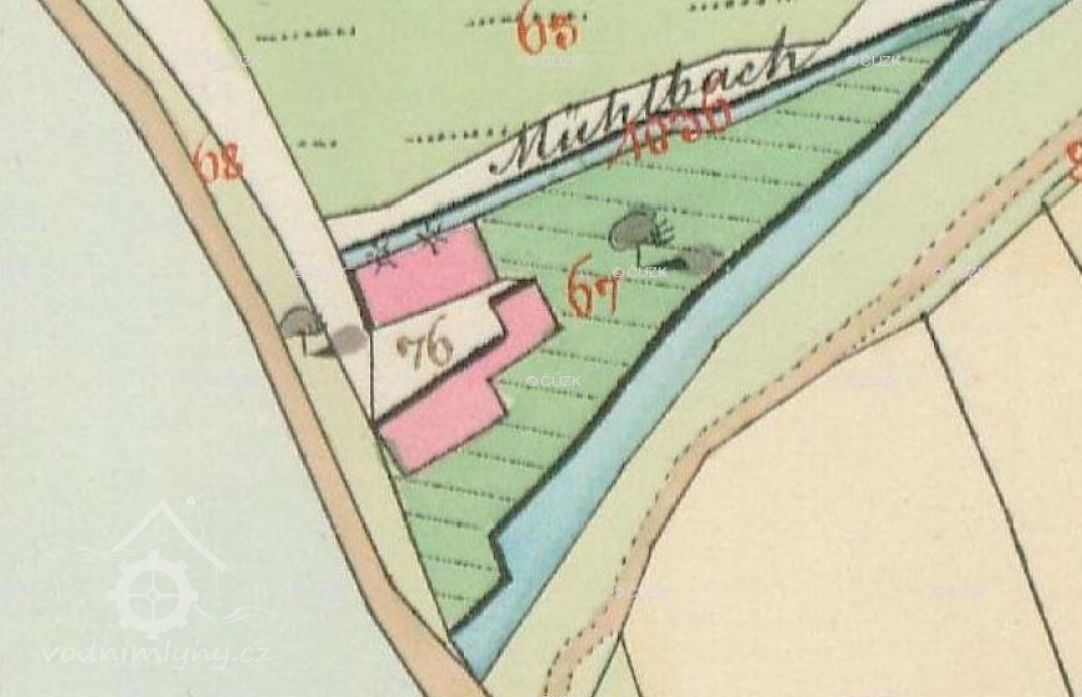 Trouba a vantroky nové od 1772, pradla však a lávky sešlé. Dva žlábky na kola kratší, nový delší, sešlé. Hořejší vodní kolo zánovní, při něm hřídel sešlý. Dolejší dto sešlý a hřídel zánovní.