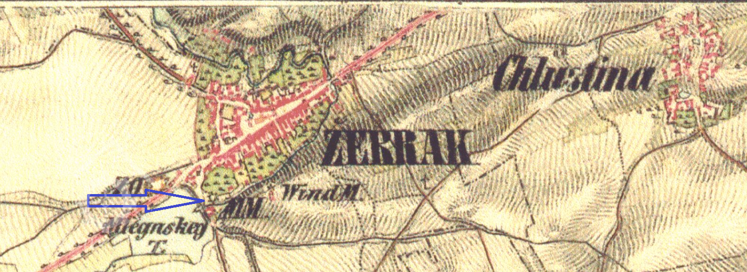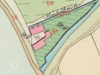 Zahrádka jdoucí od mlýna k splavu v šířce 45 kroků v sobě obsahujíc, v ostatním v obsazení vostrůvku mezi potokem, v nížto se nachází 60 stromků, mezi kterými a to sice pod hrází k chlévům 1 velký štěp a 3 velké hrušky, však ta celá zahrádka byla odevzdána bez hradby.