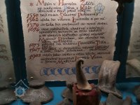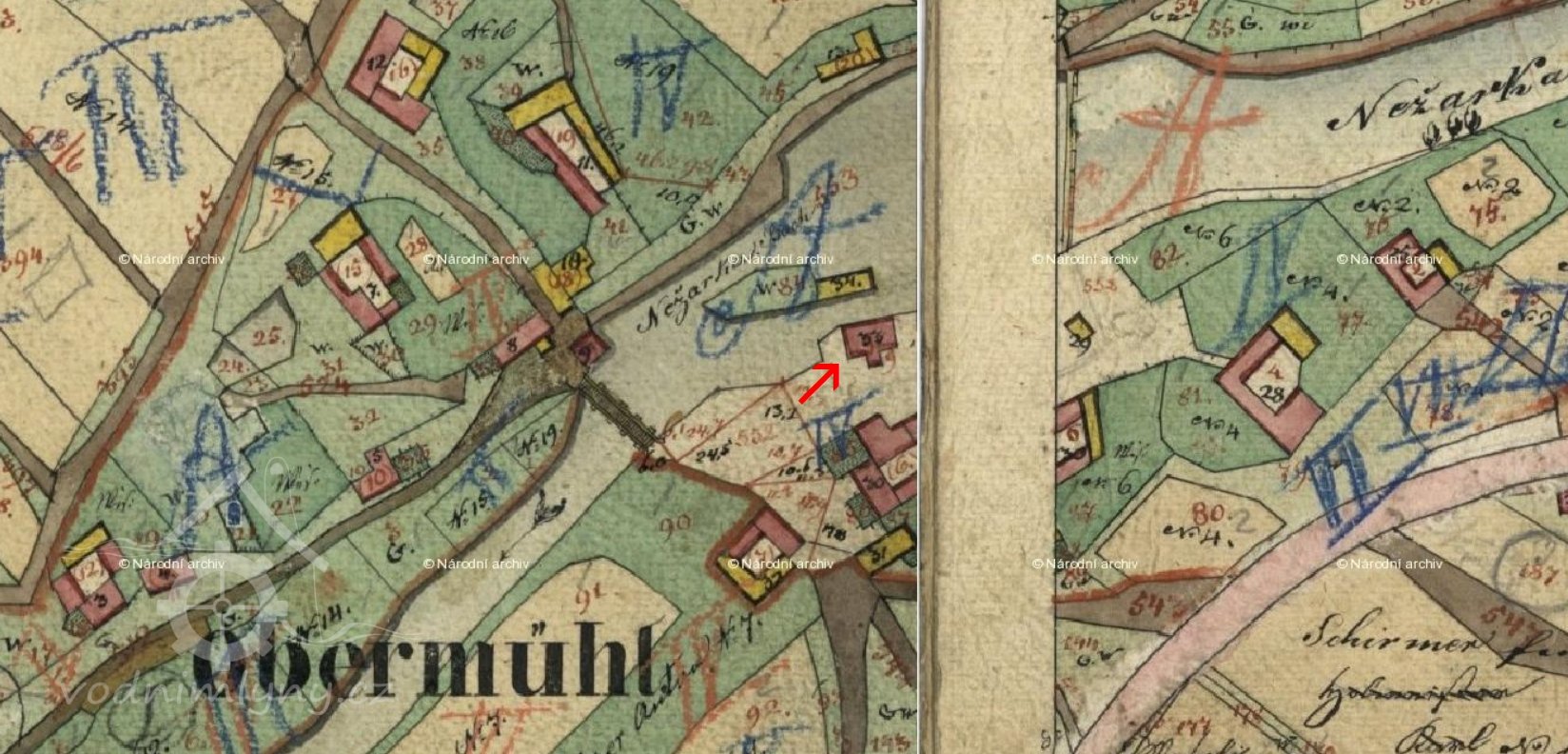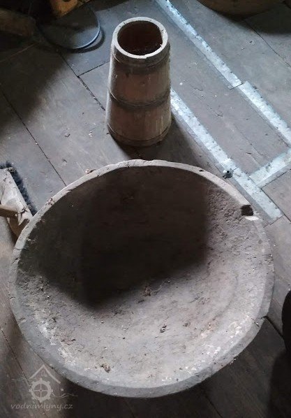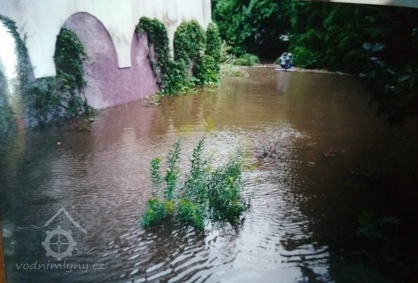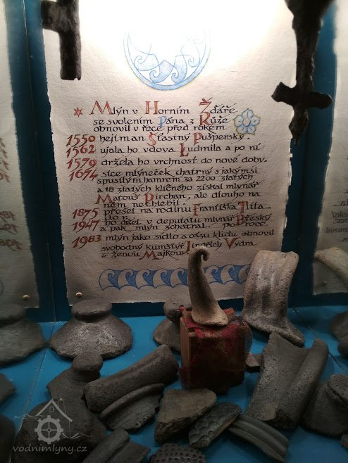 „V roce 1984 začali Vydrovi s rekonstrukcí zchátralého mlýna. Na výkop (1990, kdy se elektrárna rozšiřovala o mlýnské kolo; 2017 odstaveno - pozn. TM), který byl místy až 4,5 m hluboký, si pozvali bagr. Ten však narazil na velmi tvrdý materiál, a tak bylo nutné ve výkopu pokračovat ručně. Pomocí lopat a motyk obnažili velice zajímavou stavbu. Jindřich Vydra věděl, že mlýn je starý a že tu předtím stála část mlýna na ostrově. Pozemek, který vedle dnešního stavení je, vznikl přihrnutím ostrova. (Řeka Nežárka měla dříve dvě ramena a mlýnský náhon byl velmi dlouhý – začínal na území, které je dnes zastavěno zahrádkami a chatami.) Tvrdým materiálem, na který bagr při výkopu narazil, bylo hrázděné zdivo. Při zkoumání vyhloubené jámy objevil Jindřich Vydra zbytky těžkých, zčásti zkamenělých a zčásti shnilých trámů. Mezi nimi ležely veliké tesané kameny a spáry byly vymazány modrým jílem. Měřením dále zjistil, že se mu podařilo objevit část starého jezu, který byl kdysi pro svou zchátralost opuštěn a později přihrnut zeminou. Středověká stavba byla již značně poničená, přesto se dala zjistit koruna tehdejšího jezu.