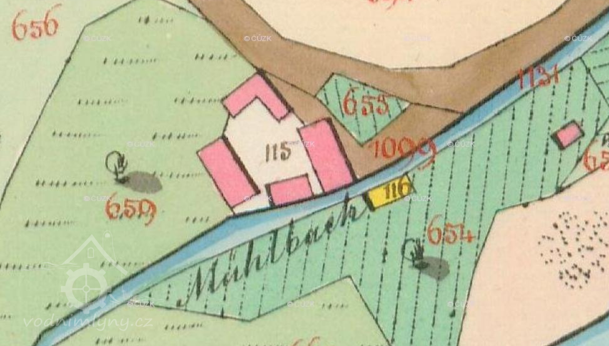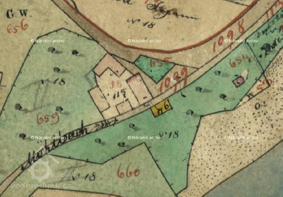 1654 Berní rula: Šebestián Peksa, mlejn na 2 kola, 4 str. rolí, 2 potahy, 5 ks hov. dobytka, 16 ovec, 4 prasata