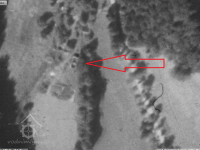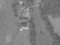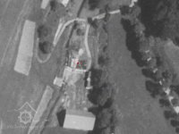Na leteckém záběru z roku 1950 zachycen již bez střechy