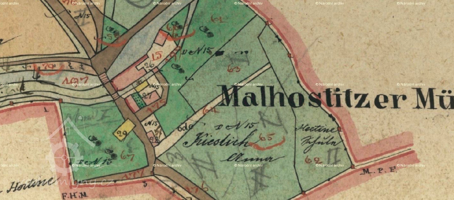 Mlýn je zakreslen na císařském otisku a indikační skice stabilního katastru, II. vojenském mapování (HŠ)