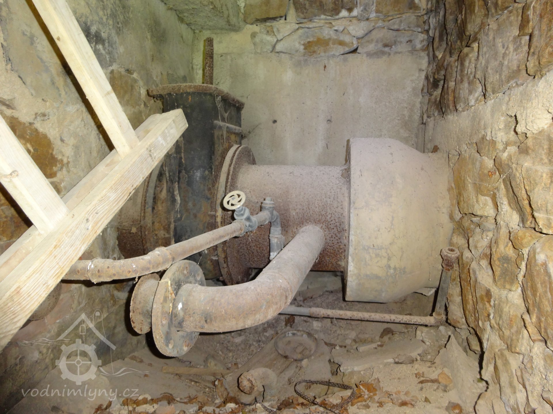 Voda na turbínu byla přiváděna potrubím z nádrže 170 metrů od mlýn, v roce 2002 poškozena povodněmi.