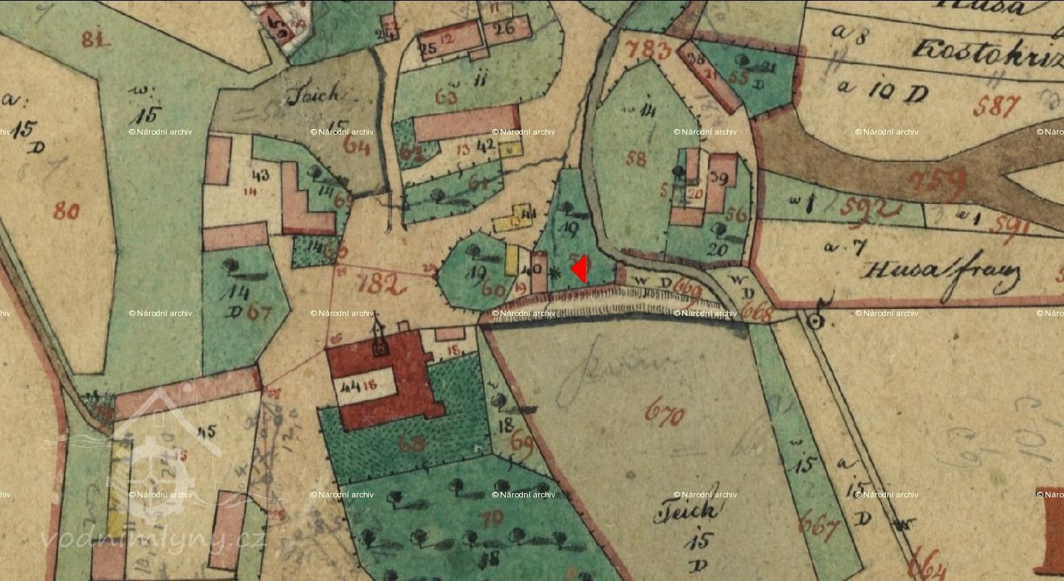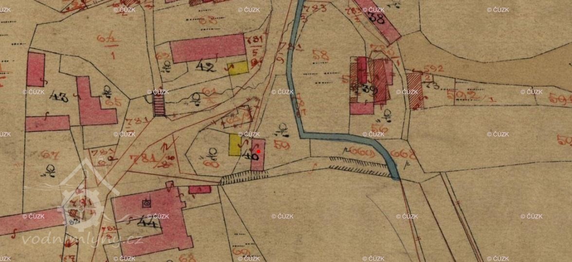 Popis1930: 1 kolo na svrchní vodu, hltnost 0,085 m3/s, spád 4,1 m, výkon 3,1 HP