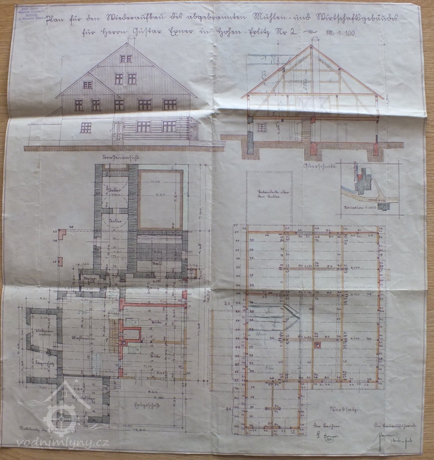 Z roku 1933 pochází plán na znovupostavení vyhořelého mlýna