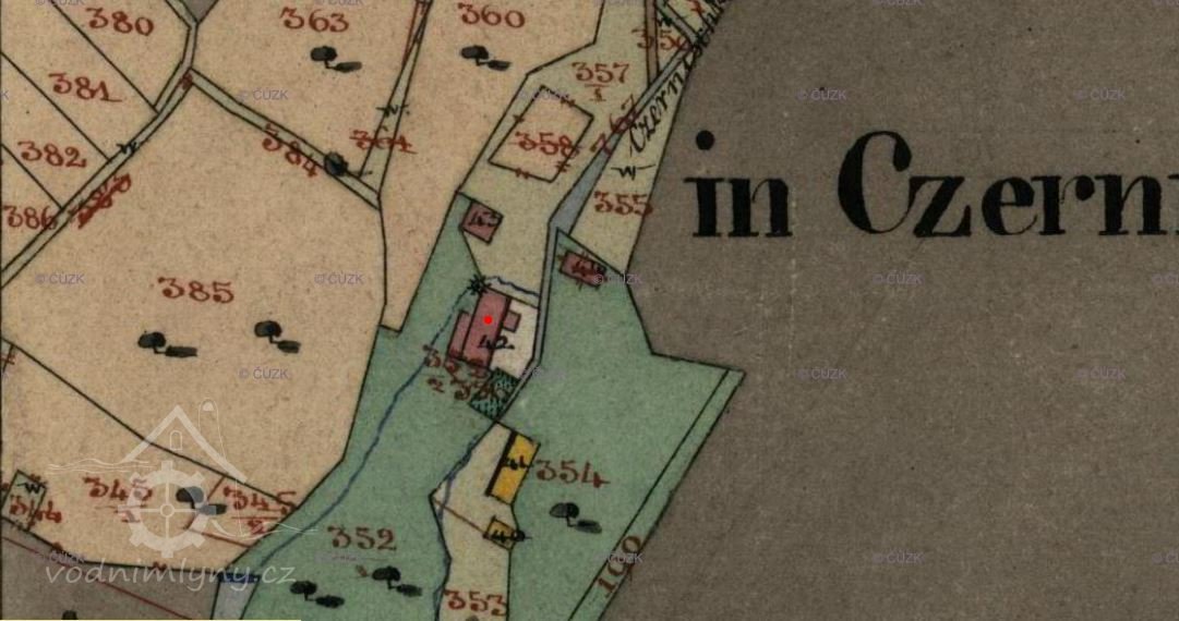 Mlýn byl prvním stavením po proudu a zároveň největším stavením v Černičkách.