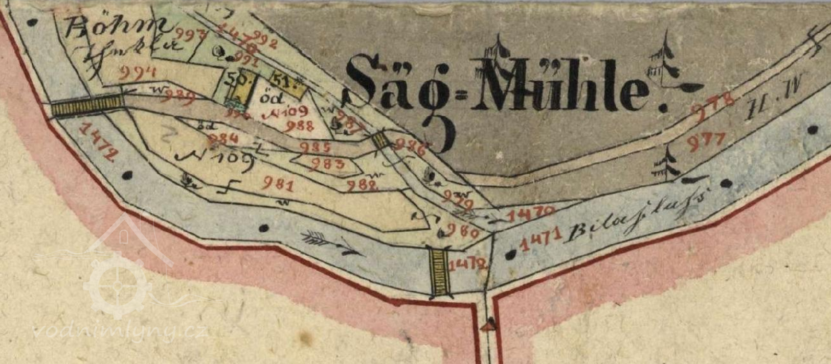 1930 brusírna dřeva, majitel Papírna Bělá, a.s. (Papier-Fabriks A.G. Bielathal)
