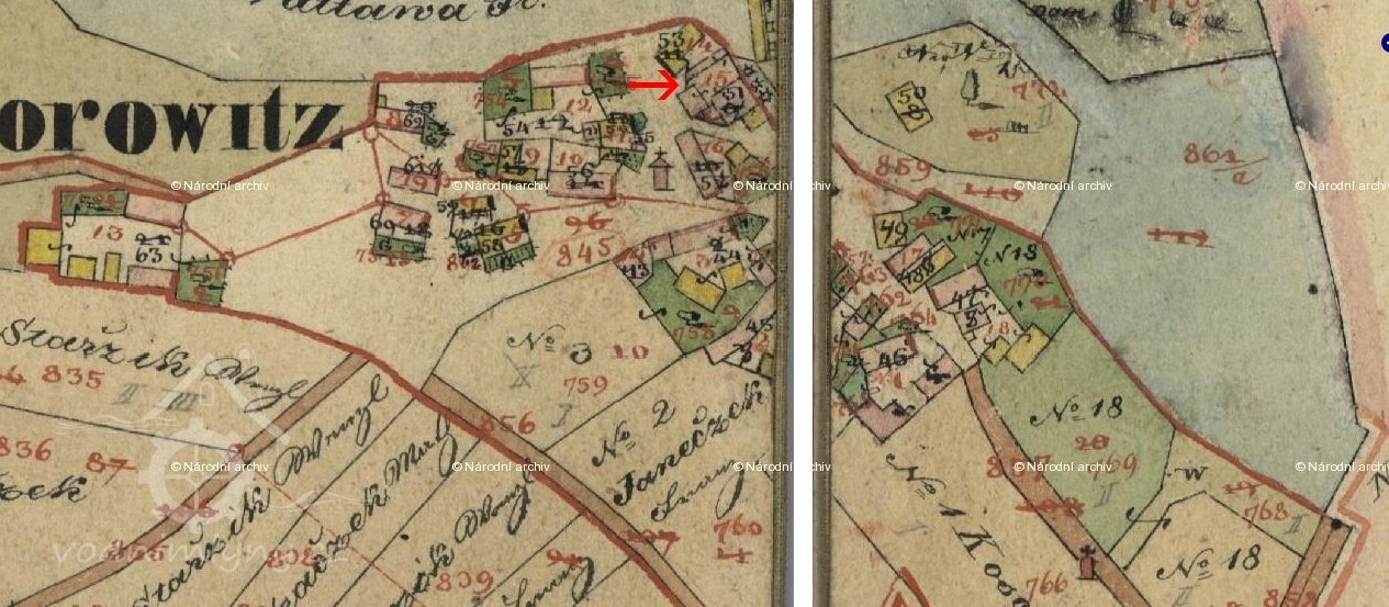 farních matrikách. Mám však záznam o pozemku z roku 1782, kdy mlýn