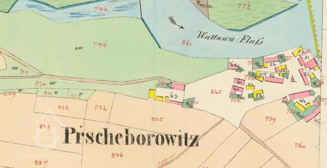 Mlýn náležel původně k Přeborovicím s čp. 15