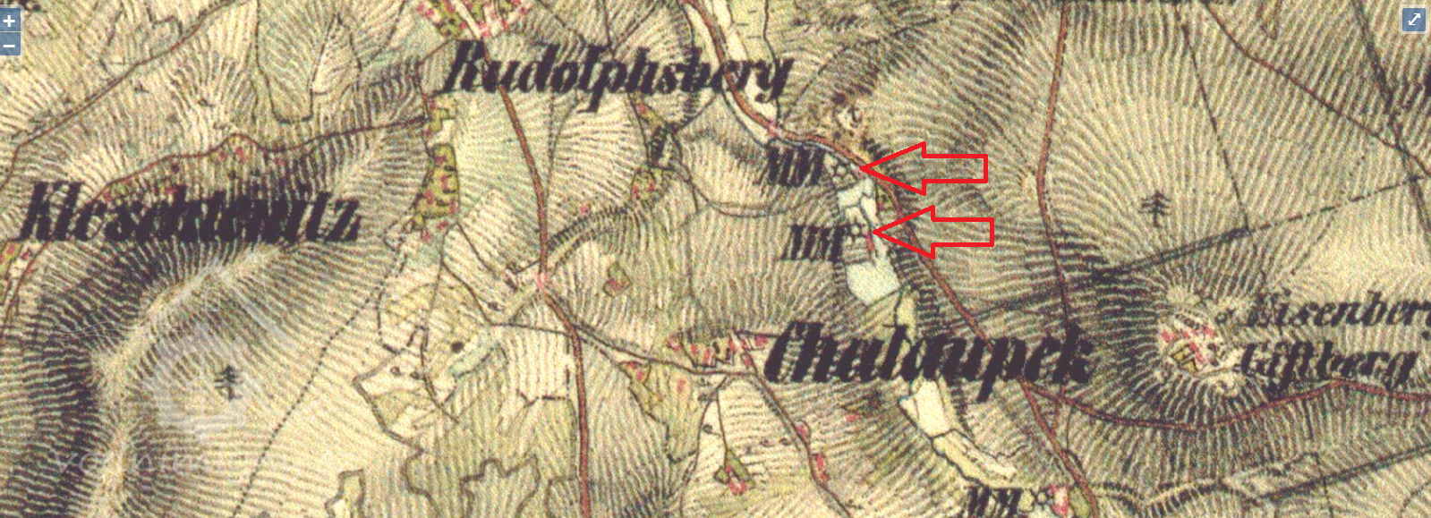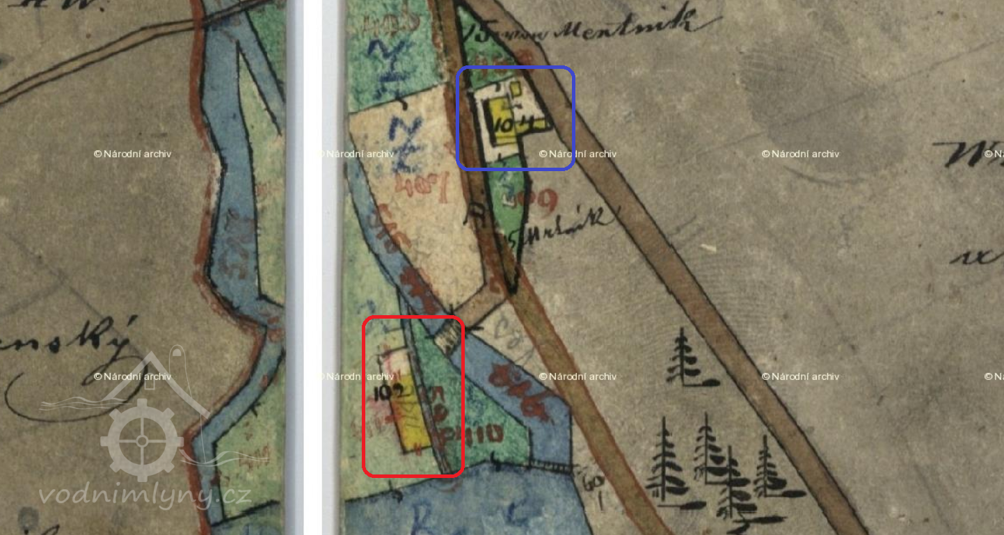 Na mapě II. voj. mapování vyznačeny dva mlýny (mlýn a pila?)