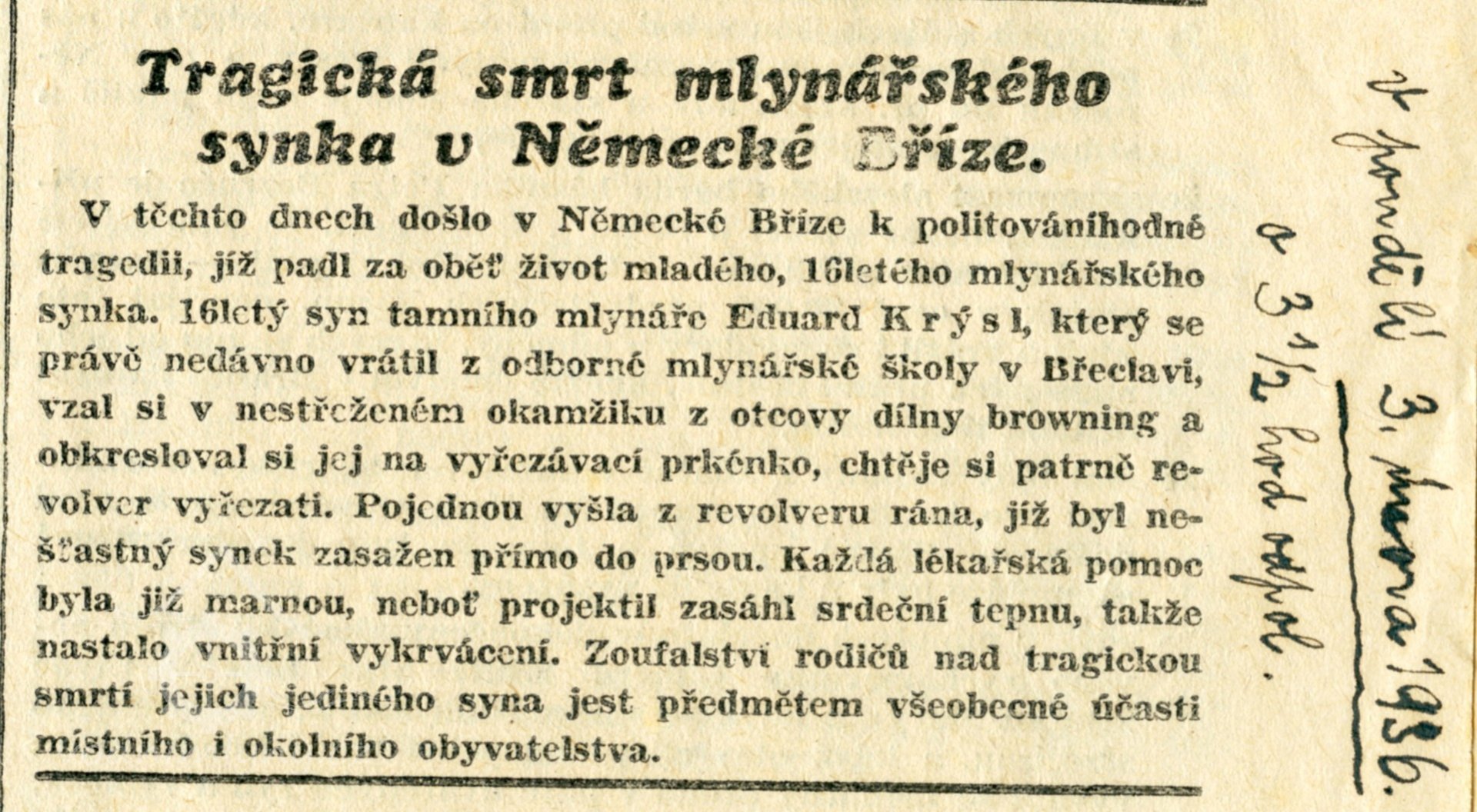 V r. 1881 zemřela majitelka mlýna Barbora Dyková, vdova po majiteli mlýna, ve věku 64 let. (RR)