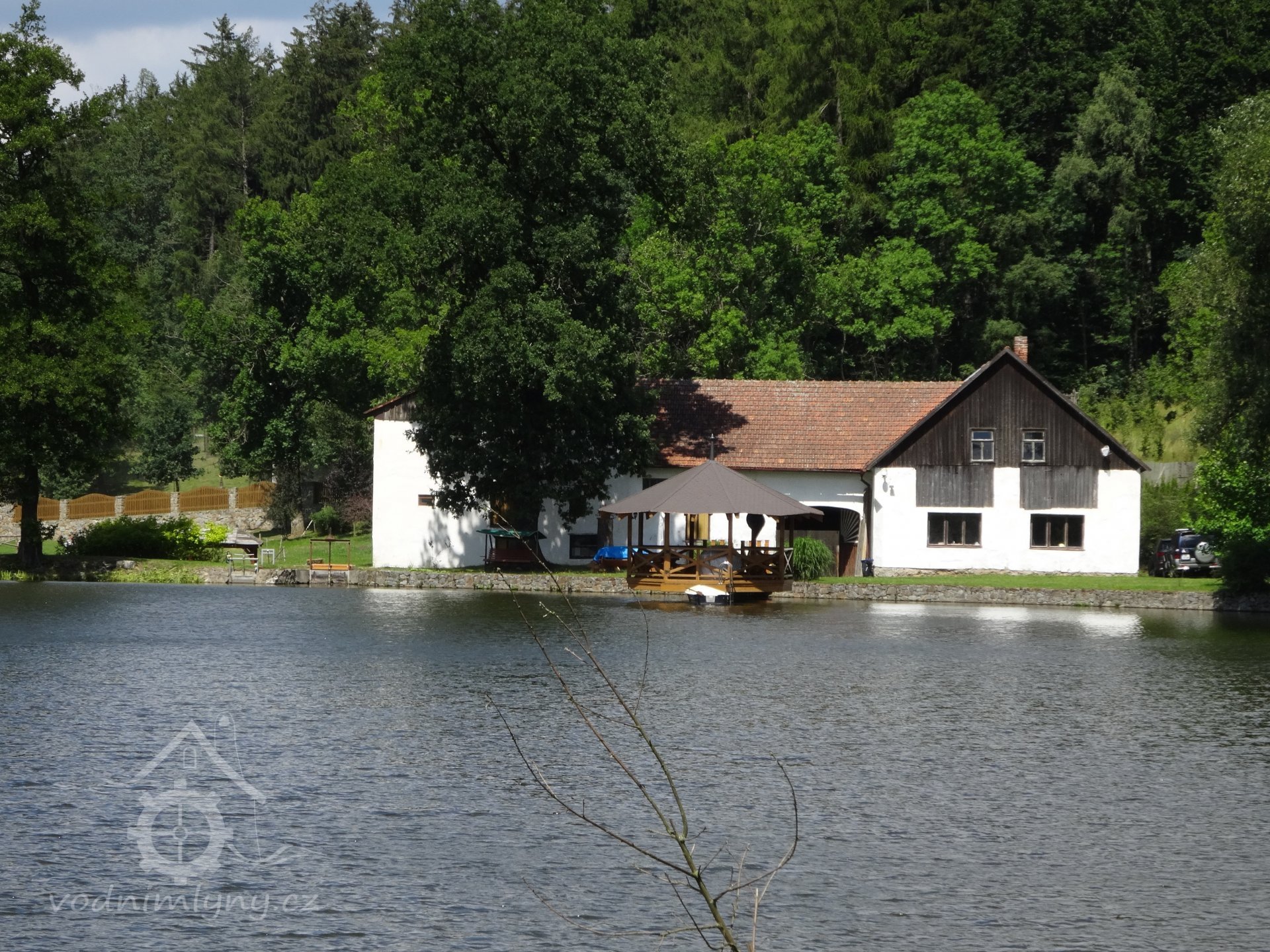 Stavidlo v hrázi rybníka. Případný provoz turbíny není znám.