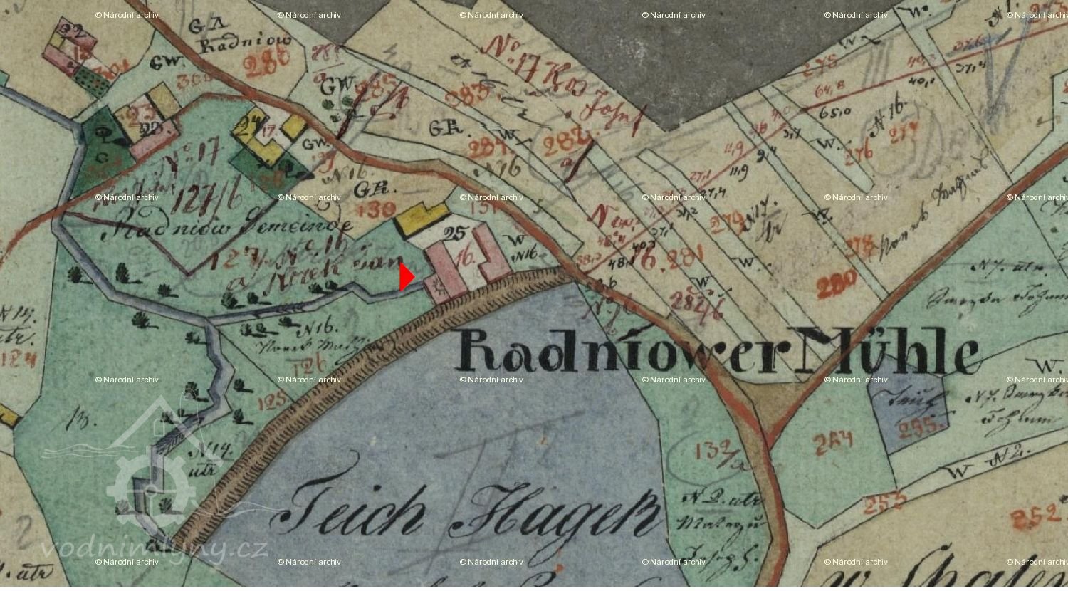 Radňovský mlýn byl postaven pravděpodobně ve druhé polovině 18. století a patřil Královskému městu Pelhřimov. Později jej koupil jeden z mlynářů Norků, kteří zde mleli po několik generací. Na začátku minulého století přibyla pila, která byla poháněna vlastním vodním kolem. Lednice byla mezi mlýnem a pilou a byla v ní dvě vodní kola. V roce 1931 je nahradila Francisova kotlová turbína od f. Union České Budějovice. Osud mlýna za druhé světové války a po ní není v dokumentech zapsán.
