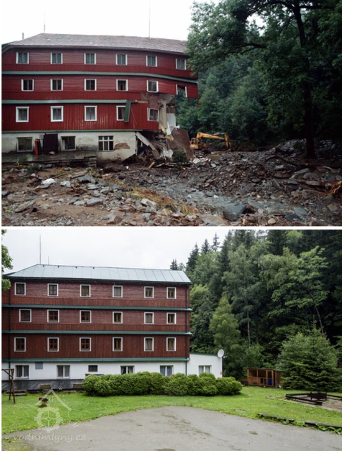 1998 chata těžce poškozena za přívalové povodně, avšak opravena