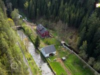 Ve východní části je situován nový objekt malé vodní elektrárny, která využívá mlýnského náhonu bývalého mlýna. Na náhonu byl vytvořen jez s vybetonovaným rybníčkem, kašnou, s jalovým přepadem a jemnými česly. Po proudu je situován patrový objekt strojovny z vodostavebního železobetonu na obdélném půdorysu o rozměrech 14,9 x 8 metru, krytý nízkou sedlovou střechou z umělého šindele. Trojúhelníkové štíty průčelí jsou vyzděny z tvárnic. V přízemí strojovny je turbinové ústrojí s přímoproudou S turbínou. Přívod vody je veden při spádu 6 metrů a průtoku 0,17-1,76 m3/sec. Produkce plně automatizované elektrárny je 437 MWh. Za strojovnou se nachází vybetonovaný odtokový kanál, odvádějící využitou vodu zpět do koryta řeky Teplé.