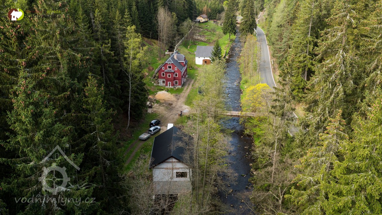Mlýnský náhon vede v zadní části pozemku za hlavní budovou. První vodní kolo bývalo situováno na zadní části hlavní budovy, druhé na šikmo připojeném dřevěném přístavku.