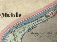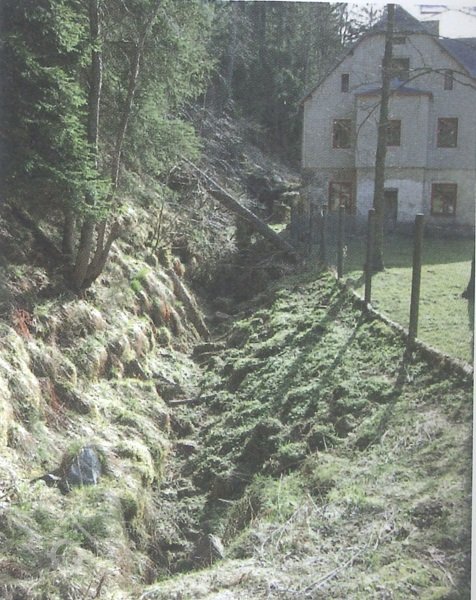 První vodní kolo bývalo situováno na zadní části hlavní budovy, druhé na šikmo připojeném dřevěném přístavku, jak ukazují skica i otisk z roku 1841.