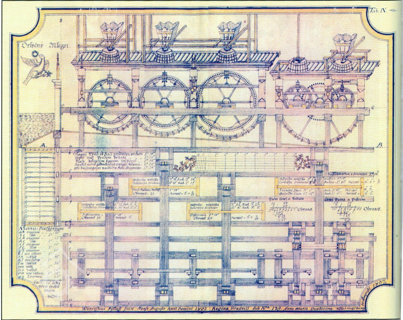 1802 v náčrtníku J. a V. Pilařových velké schéma mlýna o třech složeních a třech kolech na spodní vodu, nadepsané Orlyčný Mlegn, není však jasno, zda se jedná o tento mlýn nebo o některý jiný mlýn na Orlici.