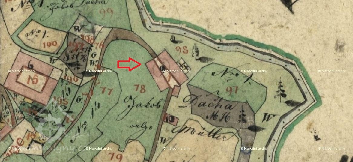 Na indikační skice stab. kat. 1824 - 1843 poznámka /http://vodnimlyny.cz/upload/media/6395/70468.JPG/ :