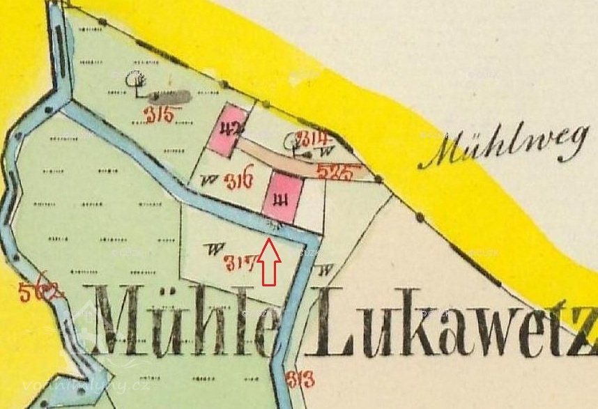 Mlýn je vyobrazen na I. vojenském mapování z let 1764-1768.