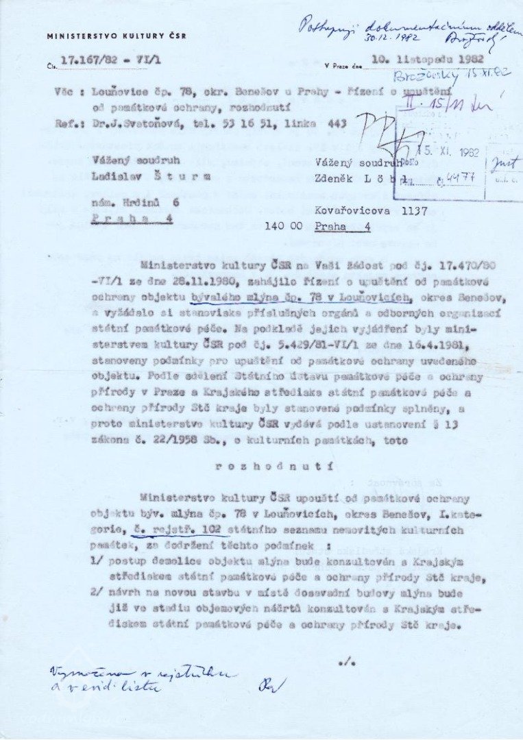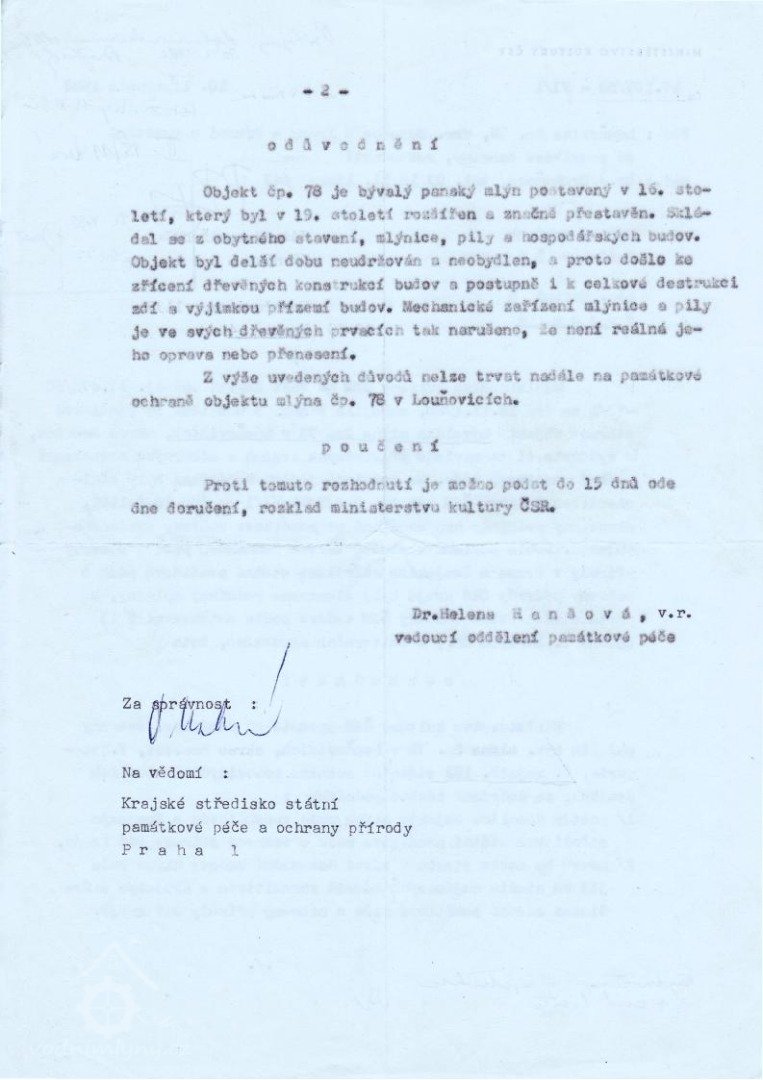 1840 Arcibiskupství jakožto louňoviclká vtchnost nechala postavit nový kamenný mlýn
