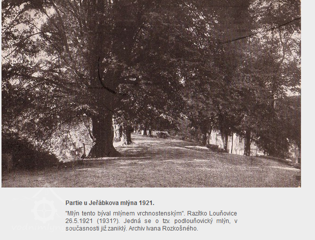 Mlynář Jeřábek jel v čele banderia, které slavnostně vezlo 12. května 1868 do základů Národního divadla v Praze blanický kámen. Na památku této události vysázel podél silnice u mlýna lipovou alej. U Jeřábků měli 5 dětí, nejstarší syn padl v 1. světové válce a čtyři dcery, které se zapojovaly do kulturního dění v Louňovicích, byly členky tehdejšího ochotnického divadla. Rod Jeřábků tu spravoval mlýn plných 77 let od r. 1848 – 1925. 19. prosince 1925 se v Podlouňovickém mlýně změnil hospodář. Do mlýna přišel z Nučic u Českého Brodu mladý mlynář Václav Mikšovský, za manželku si vzal Růženku dceru starého pana otce, který jím zároveň předal celý mlýn s pilou, hospodářstvím a polnostmi. Nástupce zmodernizoval chod mlýna. Nahradil mlýnská kola turbinou na vlastní elektrický proud, poháněnou vodou přiváděnou ze slepého ramene Blanice. Elektrický pohon přivedl i ke Kanadské pile, která byla součástí mlýna již od roku 1840. Pila byla vedena jako chráněná památka pro její zvláštnost. Její stavba byla celá dřevěná i spojení bylo bez jediného kovového hřebíku. Elektřina do obytné části mlýna byla zavedena až po r. 1930 přípojkou ze Světlé. Do budovy mlýna byly ze silnice dva vchody. Jeden do mlýnice, druhý do obytné části. V přízemí byla šalanda, kde se scházela mlynářská chasa, stárek, mládek, čekali tu mleči, pobývali krajánci, kteří se tu vyspali i najedli. Krajánci přicházeli, aby seřídili a opravili zařízení mlýna, přinášely zprávy z jiných krajin, zpívali, vyprávěli příhody veselé i smutné a pak odešli do dalšího mlýna. A co se tu v šalandě vyprávělo? Že po smrti jisté děvečky, která se u mlýnských kol utopila, tady strašila. Nebo, že hastrmani odtud prý chodívali do Louňovic k muzikám do hospody na „Adamovsko“, to byl hostinec, který stál na rohu náměstí a Rozmarýnské ulice. V přízemí byla ještě velká kuchyň, ve které se pro všechny vařilo a černá pec na pečení chleba. V poslední době tu vypomáhala stará paní Jindrová, pravá ruka paní mlynářky, výborně vařila a pekla chutný chléb. Bydlela v blízké vile Blaník. Stávalo se při velké vodě v Blanici, že protékala chodbami v přízemí mlýna. V 1. poschodí byla velká ložnice a prostorná obývací místnost, zároveň jídelna s dlouhým stolem a lavicí. Tady měl i pan mlynář svůj koutek s kancelářských stolem, kde „úřadoval“. Vedl účetní knihy o hospodaření o výplatách pro úřady i pro vlastní potřebu. Zde potvrzoval „mlecí knížky“, doklad v množství o druhu obilí na semletí a pak o převzetí mouky.