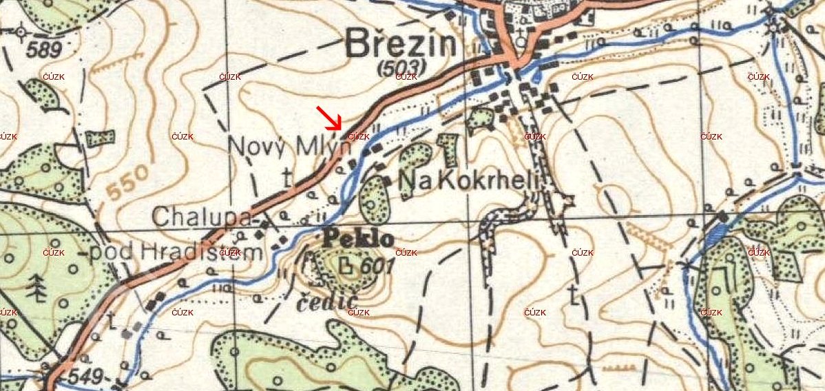 Bývalý mlýn na Kokrheli u Březína. Dnes slouží k obytným účelům.