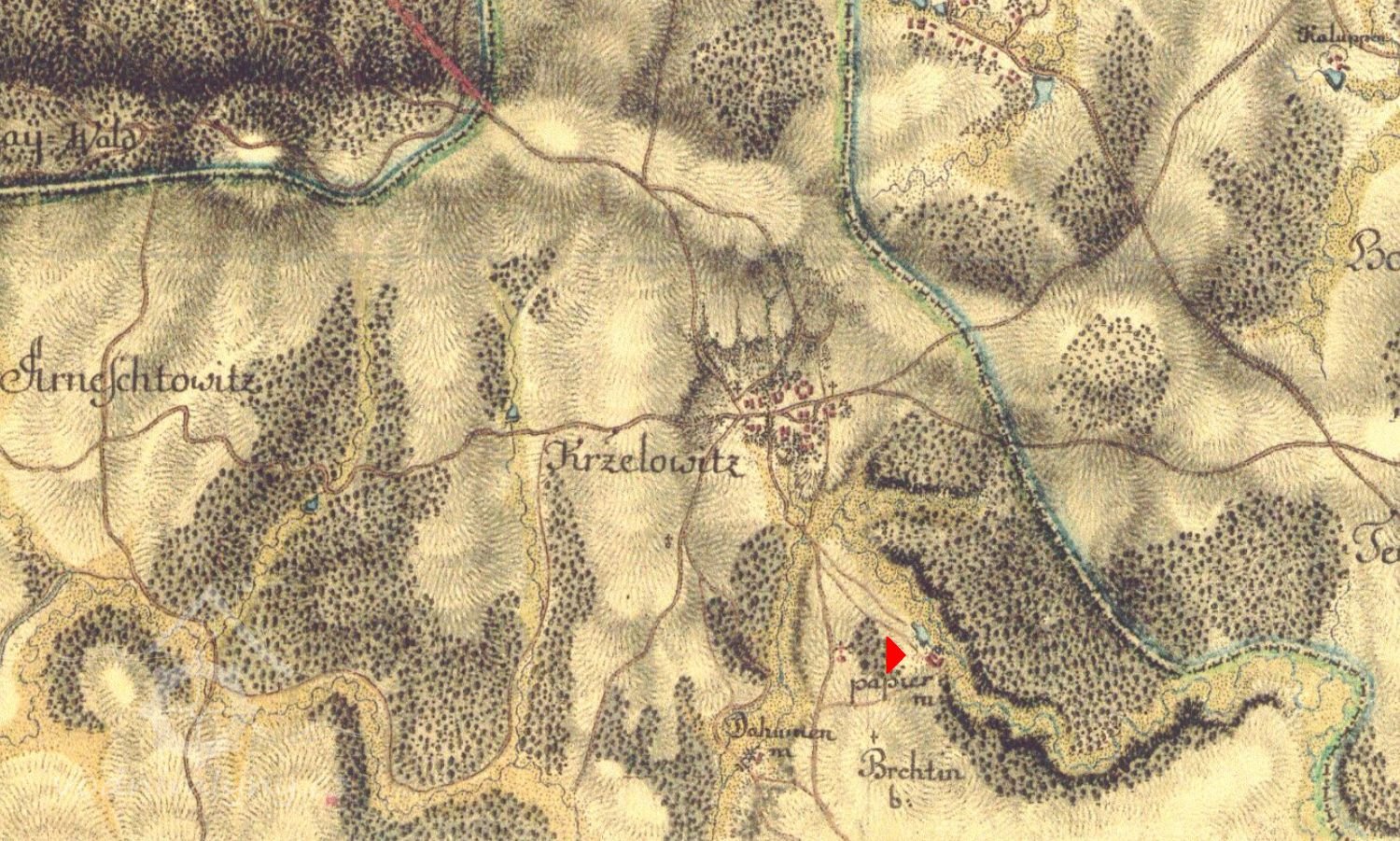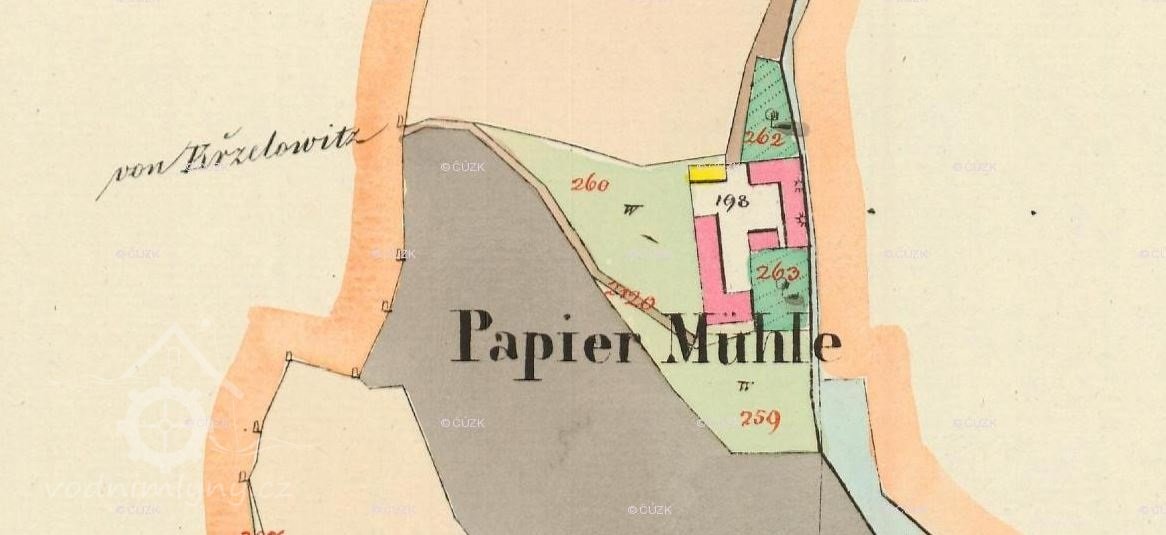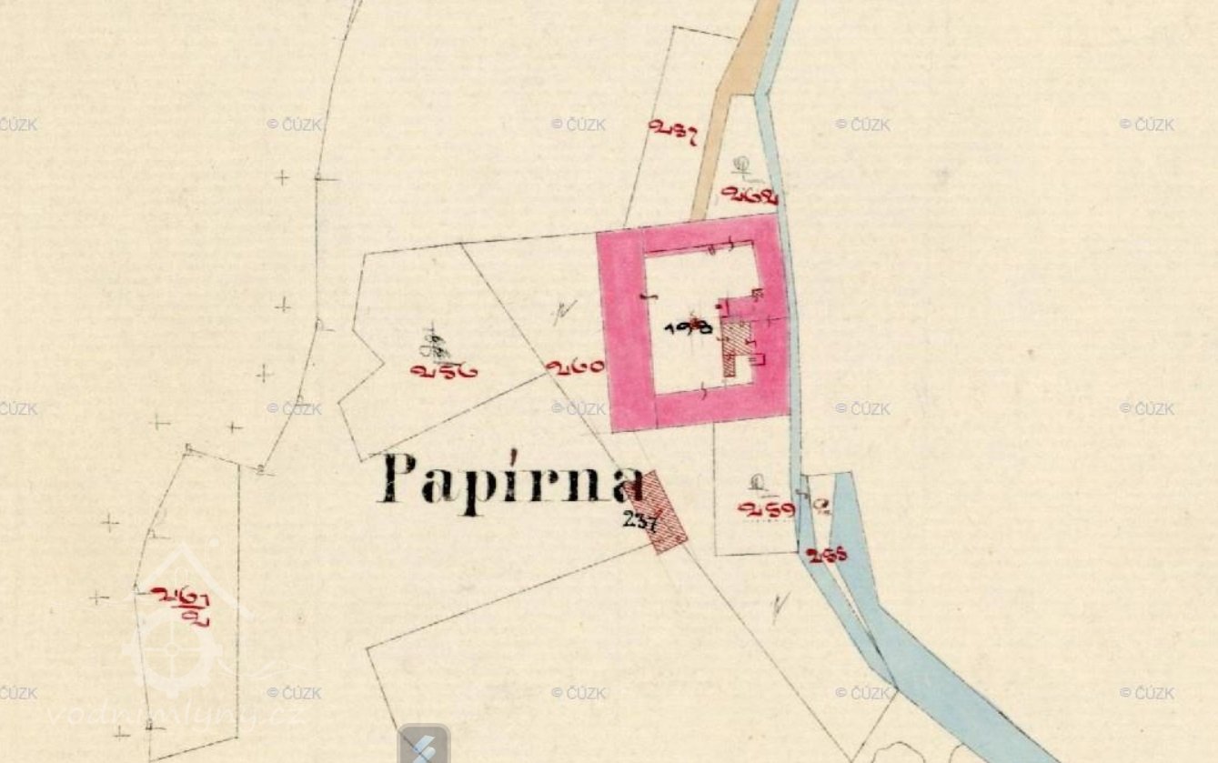 Ruční papírna vznikla adaptací staršího mlýna při řece Trnavě na tehdejších arcibiskupských pozemcích kolem roku 1675, jejím prvním nájemcem byl papírník Erhart Feldo (papírní mlýn na mletí hadrů je zmiňován v urbáři arcibiskupského velkostatku z roku 1746). Manufakturu roku 1850 koupili bratři Jakub (1818–?) a Ignác Spirové (1817–1894) a v následujících letech ji přeměnili na strojní papírnu. Hlavou podniku byl Jakub, který roku 1853 zařídil parní stroj na topení dřevem, koupil nedaleký mlýn na Želivce (Želiv-Lhotice čp. 22 49°33'35.49"N, 15°14'35.70"E), ke kterému zvýšil spád vody a vybudoval tam brusírnu, odkud vozil dřevěnou drť do červenořečické papírny. Továrna vyráběla hlavně obalový papír na cukr a zaměstnávala až šedesát dělníků. Po požáru v roce 1858 byla papírna obnovena zhruba do dnešní podoby uzavřeného čtyřkřídlého areálu. Severní reprezentativní patrové křídlo s vjezdem a štítem s hodinami nad ním obsahovalo kanceláře a obytnou část, vlastní továrna se nacházela v jižním a východním traktu při náhonu u Trnavy, na nádvoří stála kotelna s komínem, v západní části byly sklady a dílny. Roku 1860 Ignác Spiro z firmy odešel a zahájil vlastní podnikání v papírenském mlýně pod Českým Krumlovem (Větřní). Ještě v roce 1862, pod názvem Jakob vormals Gebrüder Spiro Papierfabrik, zaměstnávala továrna přes stovku lidí, postupně se ale zadlužovala, roku 1878 skončila v exekuci a poté několik let vůbec nepracovala. Roku 1890 papírnu koupil Emanuel Vodička (provozoval turbínu 30 HP) a o pět let později ji prodal bratrům Isidorovi (1866–1921) a Karlovi Nettlovým. Ti zlepšili strojní vybavení a začali s produkcí balicích papírů na sáčky. Karel měl tiskařskou koncesi (k roku 1897 vystoupil z firmy), vyráběly se také obaly s přetiskem např. pro lékárny. V letech 1910–1911 firma Červenořečická strojní továrna na papír, Isidor Nettl, zahájila výrobu surové krycí lepenky a izolačního papíru (asi 1 600 tun ročně), a za tím účelem pořídila nové strojní zařízení i pohon. Vybavení dodala První brněnská strojírna, starší Francisovu turbínu nahradila větší o výkonu 105 HP, firma Ant. Dvořák & K. Fischer v Letkách u Libčic nad Vltavou postavila nový komín 35 metrů vysoký. Projekt železniční dráhy, která měla spojit Červenou Řečici s Humpolcem a Pelhřimovem, se neuskutečnil, což rozvoj papírny značně omezovalo, od roku 1914 užívala, jako první v okrese, nákladní automobil značky Büsing. Po rozpadu monarchie ztratila firma část odbytišť, Benno (1896–1944) a Oskar (1901–?) Nettlové, kteří ji vedli od roku 1921, proto na nových strojích rozšířili výrobu jednostranně hladkých papírů a tenkého tzv. kloboukového papíru. V letech 1931–1932 byla postavena východním směrem nad řekou budova celulózky (podnikatelství staveb Antonín Schreyer, Pelhřimov) a čistírna odpadní vody podle projektu vodohospodářského inženýra Vincence Hlavinky (1862–1934), profesora brněnské techniky. Pohon závodu roku 1934 doplnila parní turbína, v roce 1937 přibyl nový papírenský stroj č. 4 (výrobní šíře 200 cm), vyráběl tzv. havana, papír na balení uzenářských výrobků, nepropouštějící mastnotu. Továrna měla tři stovky zaměstnanců a pobočku v Pacově. V roce 1938 se Oskar Nettl musel z rasových důvodů vzdát funkce náměstka starosty města Červená Řečice a v prosinci 1939 převzala továrnu Pražská a. s. pro průmysl papírenský, vyrábělo se i za války. V roce 1946 byl sice podnik Oskarovi vrácen (Benno zahynul v Terezíně), dva roky nato byl ale znárodněn a převeden pod n. p. Jihočeské papírny ve Větřní. Papírenská výroba postupně přešla na sortiment papíru pro hygienu (toaletní papír, skládané ručníky, zdravotnické podložky). V šedesátých letech byla po požáru obnovena závodní kotelna včetně zauhlovacího mostu, továrna se dále přestavovala a rozšiřovala severním směrem (sklady, čistírna, čerpací stanice), další její rozšíření nastalo po organizační přeměně podniku na akciovou společnost v roce 1992. Je stále v provozu, na historickou strojní papírnu upomíná zámecká dispozice areálu s řadou zachovaných detailů. Nedaleko papírny překonává říčku Trnavu tříobloukový kamenný silniční most (Křelovice 49°31'47.20"N, 15°10'17.28"E), postavený pravděpodobně v souvislosti s dopravními potřebami závodu koncem 19. století.