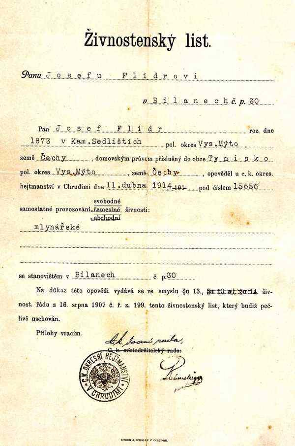1651 Soupis poddaných podle víry: mlynář Martin Vorel (35 let), manželka Anna (25), oba nepoddaní nekatolíci