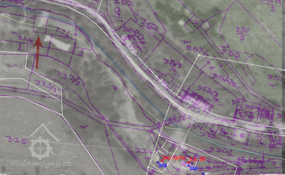 Popis1930: 1 kolo na svrchní vodu, hltnost 0,04 m3/s, spád 6,4 m, výkon 2,2 HP