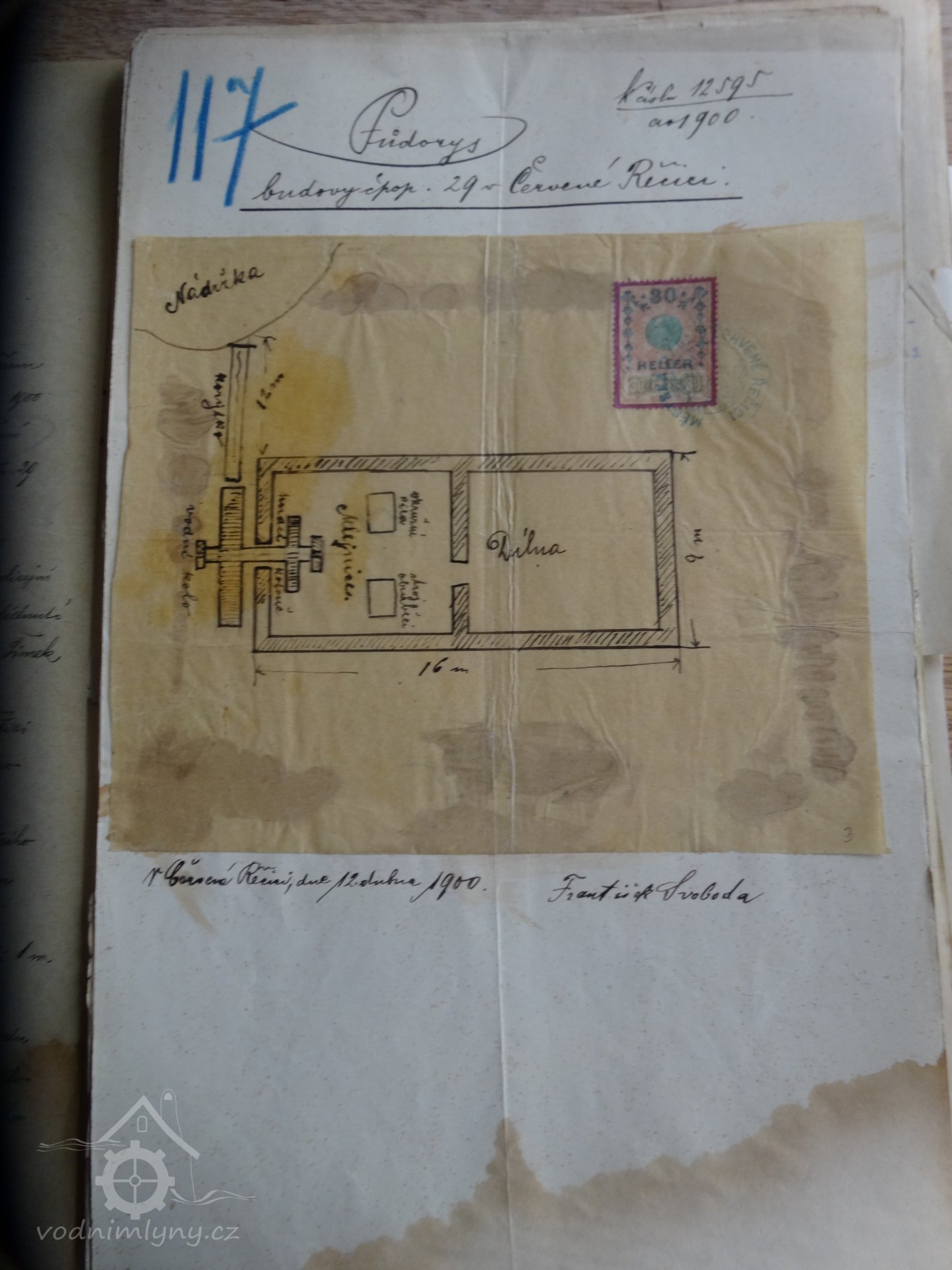 Při komisionélním jednání dne 18.7.1900 za účelem živnostenského schválení nově zřízených pil pro živnost truhlářskou v tomto bývalém mlýně bylo zjištěno, že rámcová, okružní, obráběcí a pásmová pila při truhlářské živnosti se pohání vodním kolem bývalého mlýna na svrchní vodu o průměru 4,4, m a šířce věnce 1,00 m.
