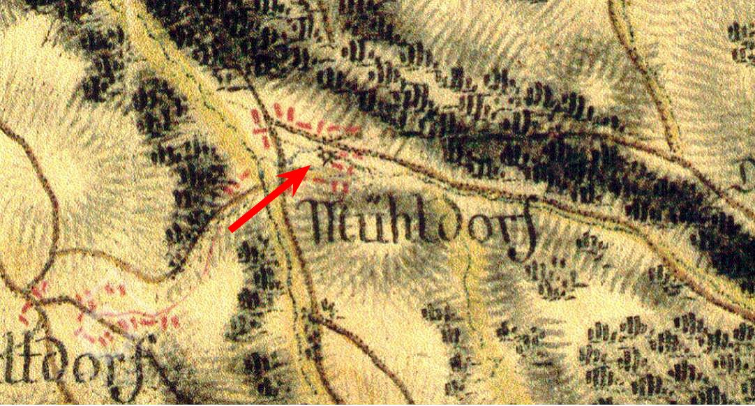 Zaniklý mlýn se nacházel v rovněž zaniklé obci Mlýnská (Mühldorf), nyní na území Vojenského újezdu Hradiště. Jednalo se o patrně nejstarší ze tří mlýnů v obci. Mlel ještě v roce 1930.