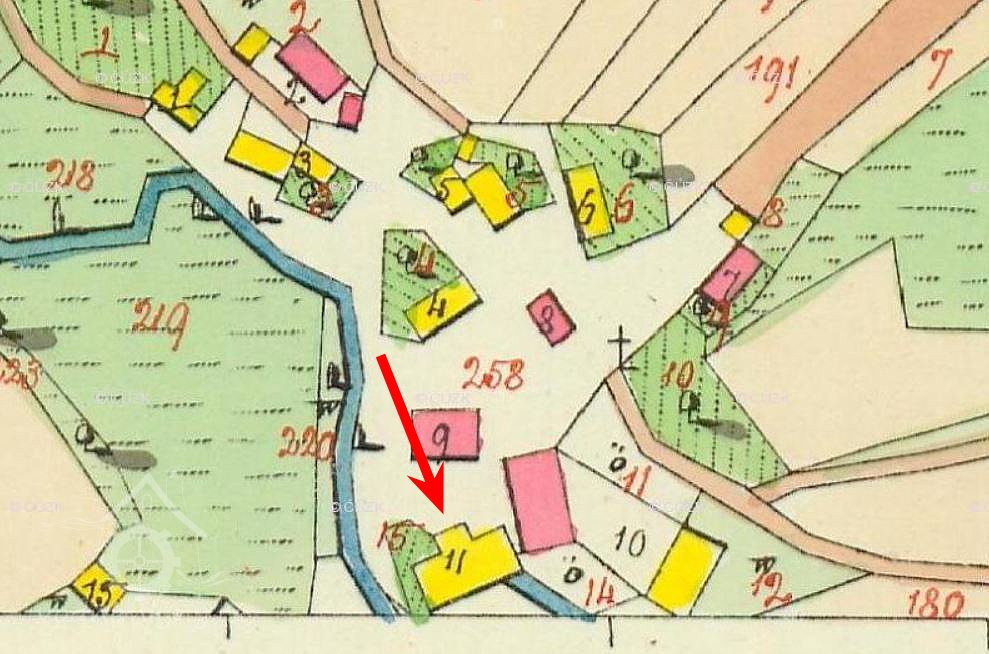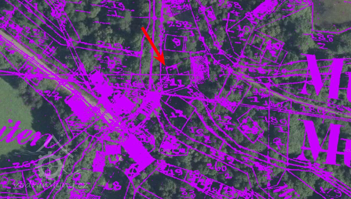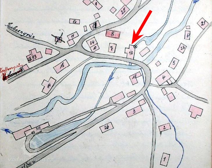 PopisV roce 1930 zde byla 2 vodní kola na vrchní vodu o hltnosti 40 a 50 l/s, na spádu 5,85 m a o výkonu 2,2 a 2,5 HP.