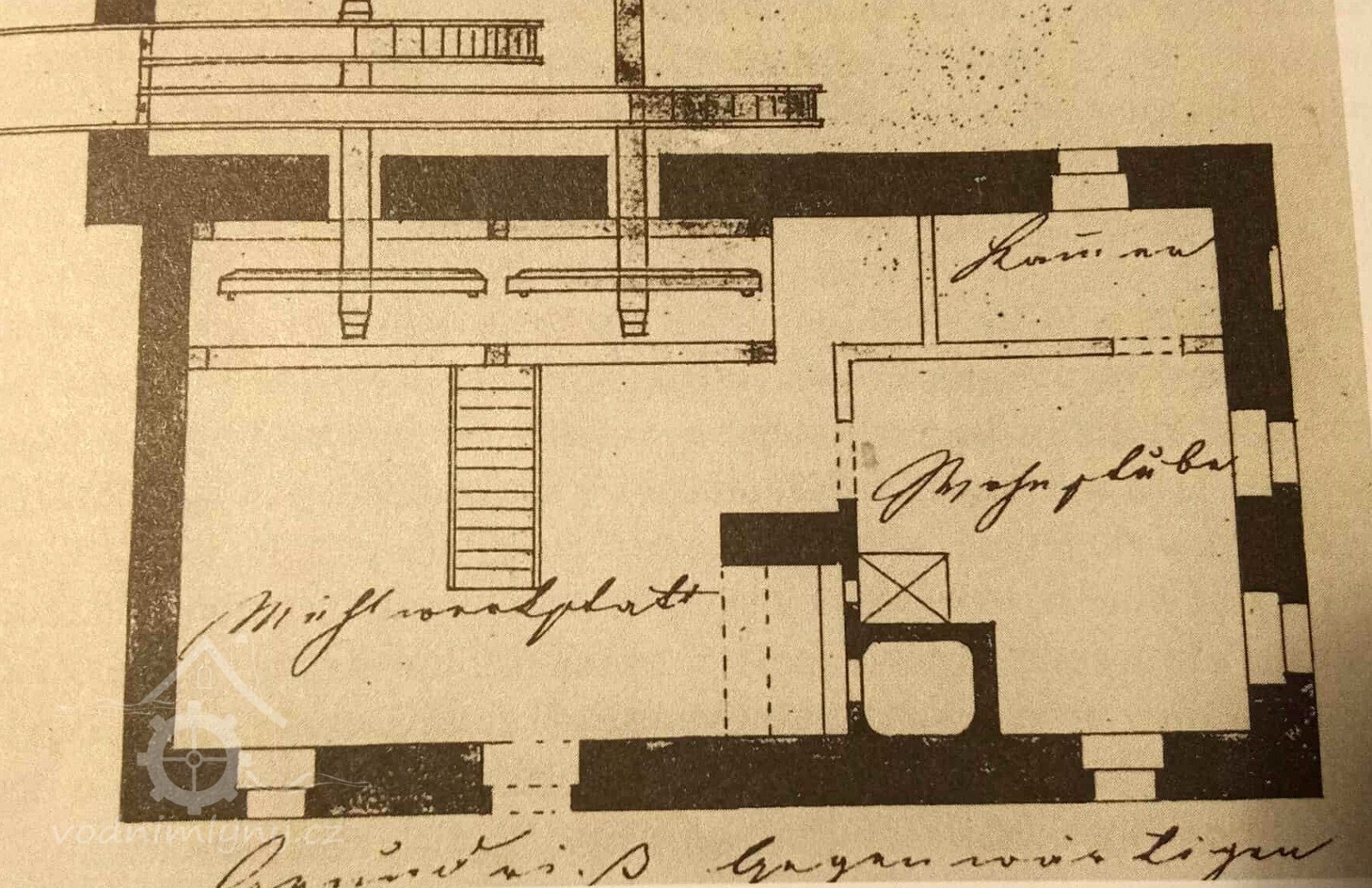 Před rokem 1906 bylo instalováno umělecké složení se dvěma stolicemi, jedno složení mělo francouzské kameny, pohon zajišťovalo kolo na vrchní vodu o průměru 390 cm a šířce 110 cm. V roce 1913 byla instalována Francisova turbína o výkonu 7,9 HP.