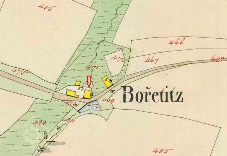 Nejstarší zmínka o mlýnu v Bořeticích je z roku 1541 v soupisu panství pořízeném při jeho prodeji, Mimo jiné se uvádí mlýny v Morašicích, Lánech, Dřenicích a Bořeticích. Panství bylo prodáno za 3000 kop grošů českých 15. června v roce 1544 Mikuláši Štítnému ze Štítněho.