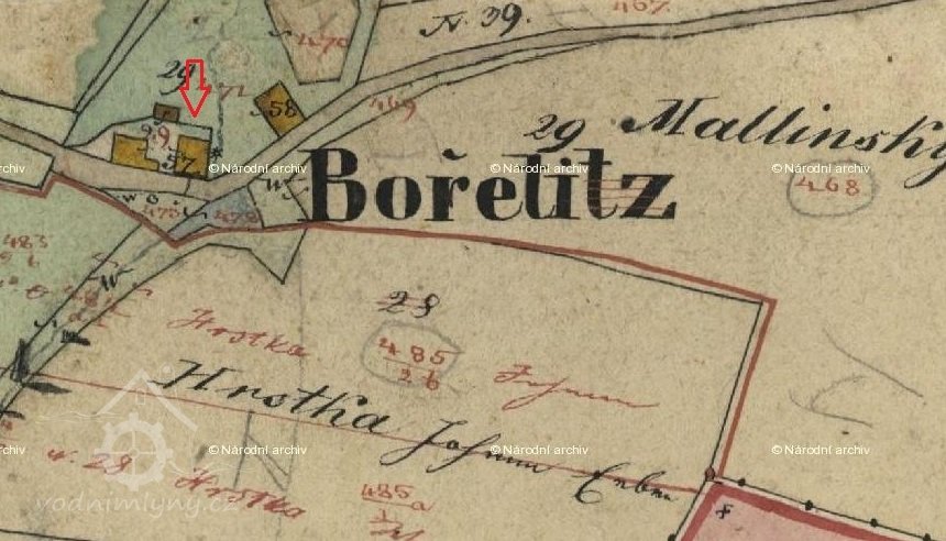 Další zmínka je z roku 1565: „sedlák Mach, mlynář bořetický, odváděl v obou lhůtách po 14 krejcarech“. U mlýna byla nejstarší známá olejna na Chrudimsku, je uváděna při koupi mlýna v roce 1580. V roce 1580 se mlýna ujal Filip Mlynář od Jana Mlynáře za 120 kop.