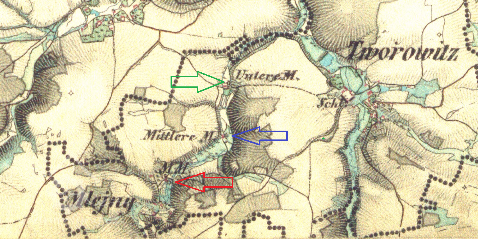 Příjmení mlynářů působících na mlýně: