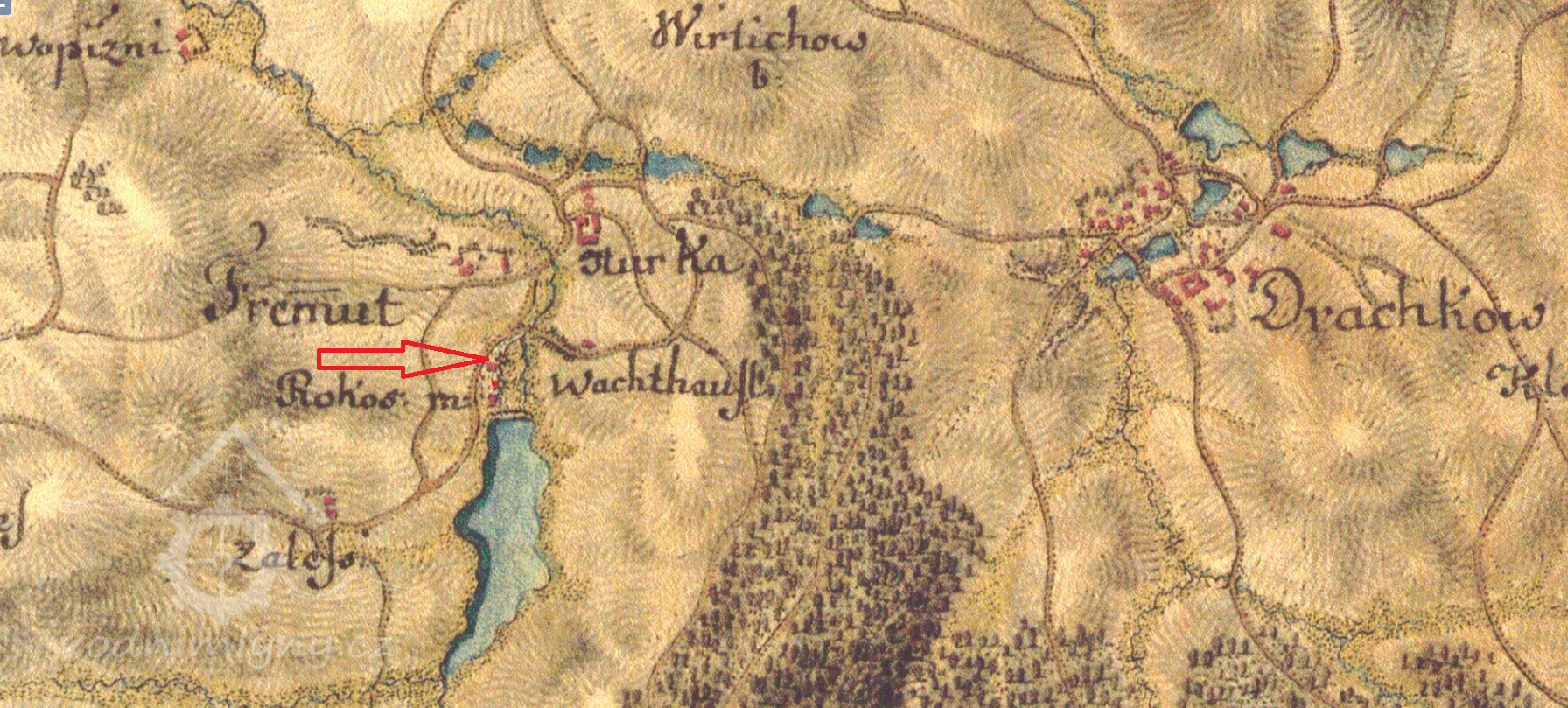 1608 Desky zemské, kvatern 183, s. 22: Jan Trmal z Toušic na Podolí prodal Kateřině Říčanské z Říčan tvrz Drachkov a dvůr Hůrka s mlýnem, který se najímá a slove pode dvorem Hůrkou