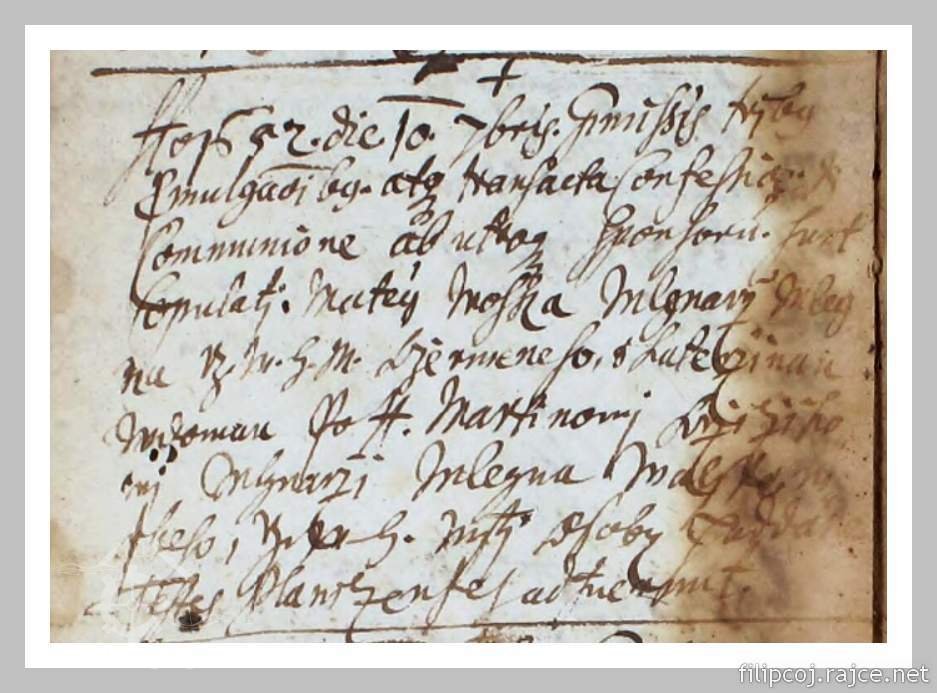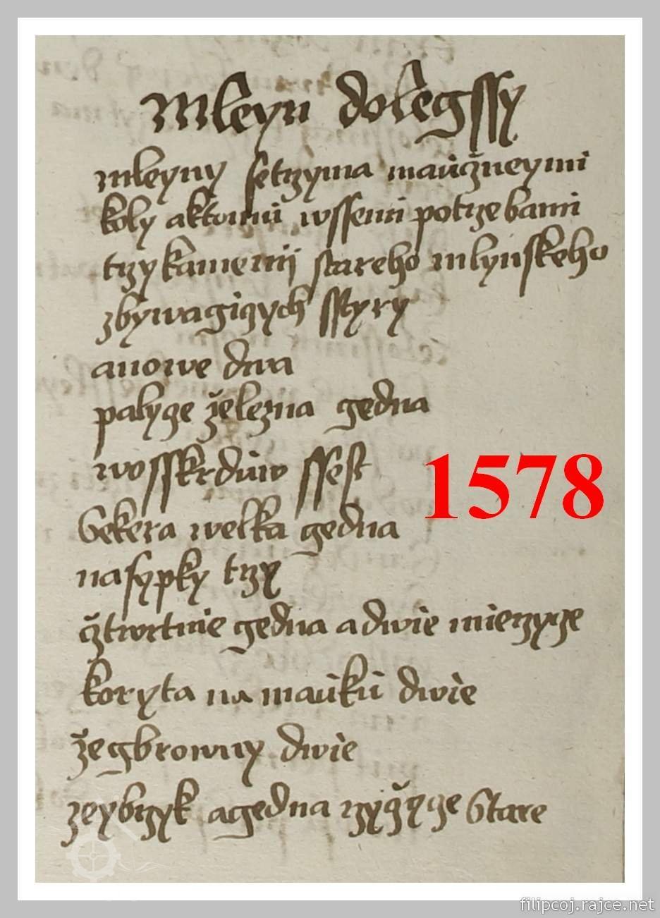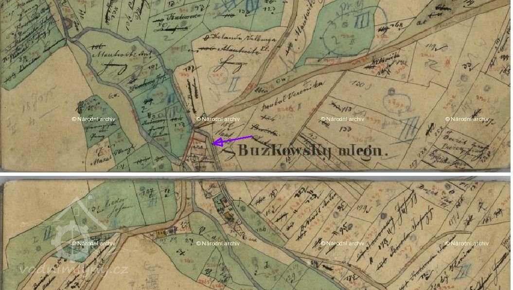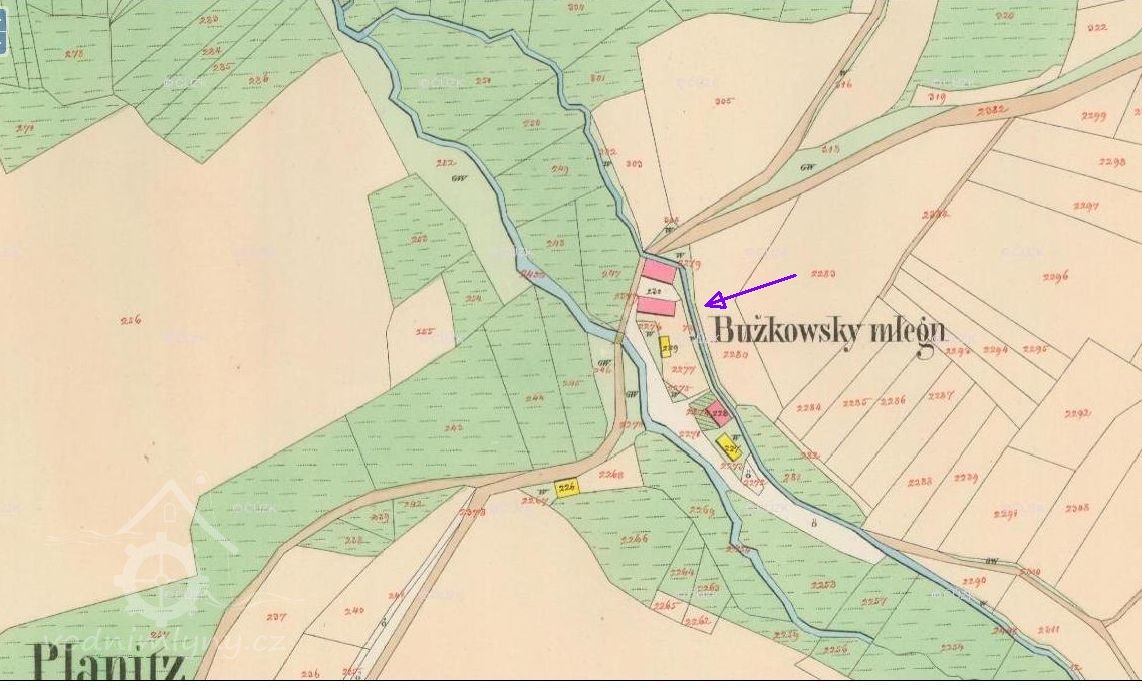 Pan Jan Pohanka, vlastník mlýna "Bůžkovského" v Plánici č. 184 jakkoli již opětně nařízeno mu bylo, aby hráze potoka mlýnského držel si v pořádku a vodu výše nezdýmal, než znamení vodní tu úředně zasazené naznačuje, přece až dosud má hráze nespraveny, cejch vodní vytrhl a zahodil a vodu zdýmal bezprávně, takže hrázemi a zdýmáním pozemky mé luční zvané "Na Kocerně" zatopuje a tím také zabahňuje i škodu nenahraditelnou mi působí.