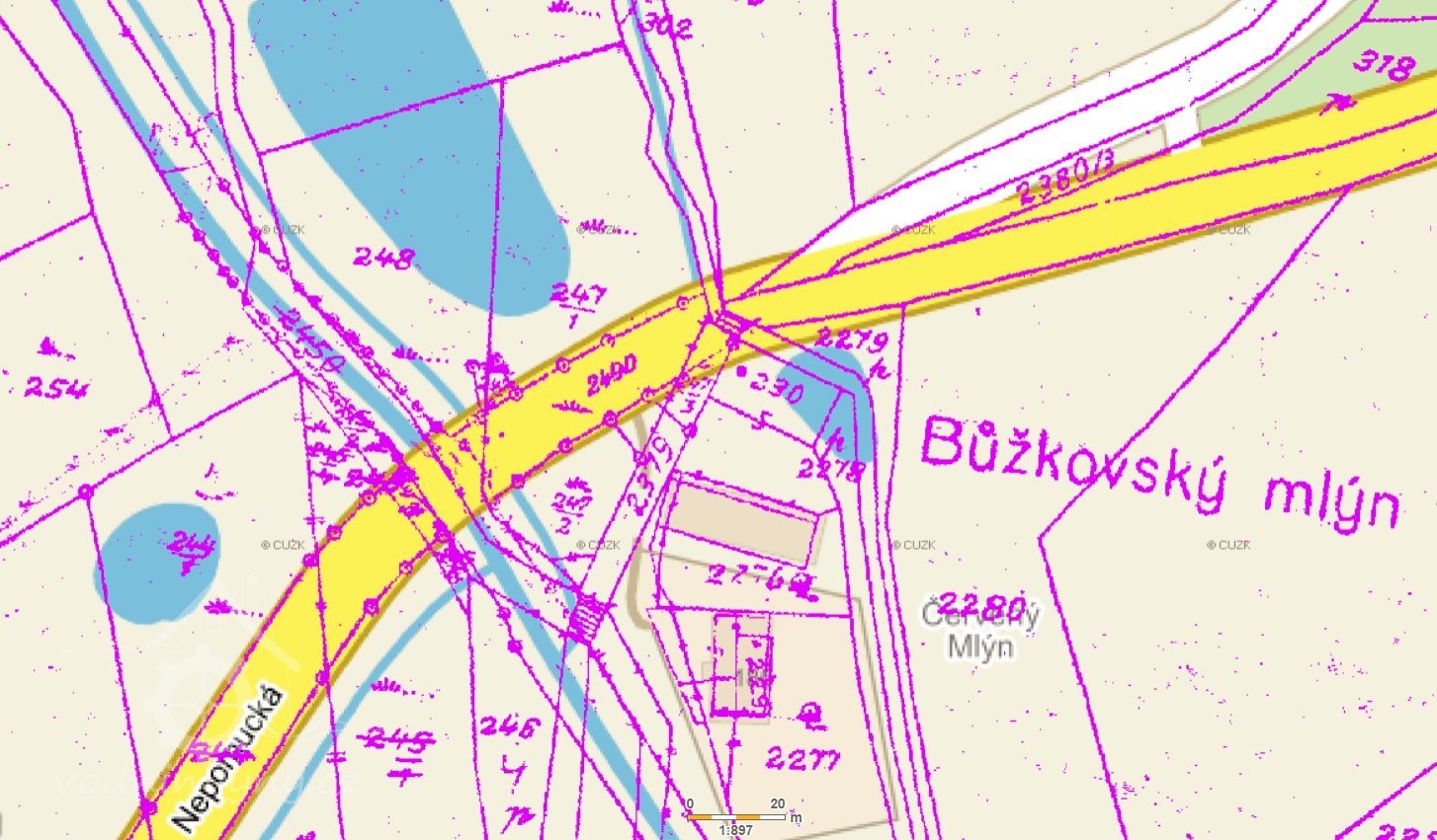 K názoru situace připojuji nákres polohopisný, činím proti p. Janu Pohankovi trestní oznámení pro přestupky § 11, 24 a 74 zákona vodního a prosím slušně: c.k. okresní hejtmanství račiž na trestní toto oznámení příslušné vyšetřování zavésti a vyřídiv vodní cejch znovu položiti, opravu hrází na útraty Jana Pohanky dáti zříditi a náležitě potrestati, jakož i do náhrady útrat mně způsobených odsouditi. Zároveň pak prosím, aby přivzetím znalců hospodářství škoda zavodbněním lučních pozemků mých způsobená a náklad na správu byly vyšetřeny, abych ohledně náhrad mohl podati žalobu soukromoprávní.