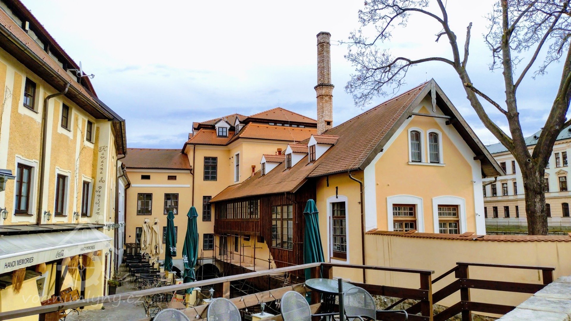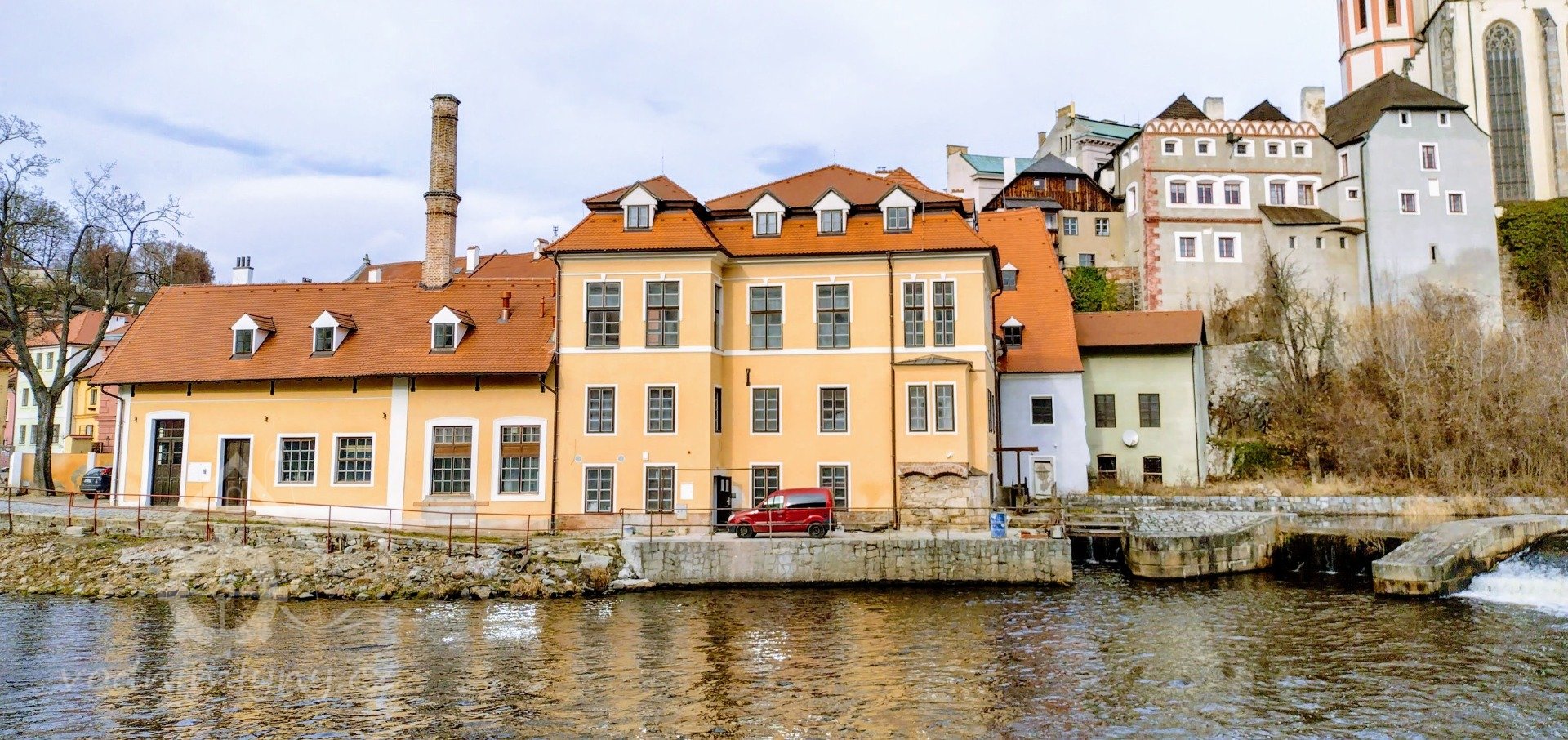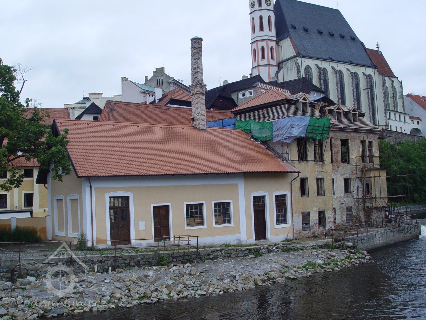 Objekt středověkého původu je zmiňován již v roce 1347, jako mlýn pod kostelem. V letech 1613 – 1614 byl celý areál renesančně přestavěn a provoz změněn na papírnu. Ve druhé polovině 18. století byla fasáda a krov obytného křídla upravena klasicistně. Po zboření Kájovských bran v roce 1881 byla v nově upravené uliční trase postavena historizující patrová budova. Další úpravy především obchodních vstupů byly provedeny na počátku 20. století. Kájovská 58 objekt středověkého původu, ale zřejmě pouze v přízemní části východního křídla valchy zůstaly dochovány zděné konstrukce z renesančního období. V 18. století přistavěn barvířský domek. V letech 1791 – 98 byly rekonstruována valcha. V roce 1869 nově přestavěna barvírna a v roce 1880 znovu upravena. V roce 1881 byla rekonstruována valcha a před rokem 1900 nástavbou 2. patra upravena do současné podoby. Kolem roku 1900 byla postavena západní přízemní část barvírny a trakt nad náhonem.