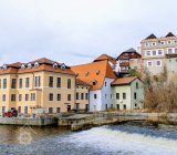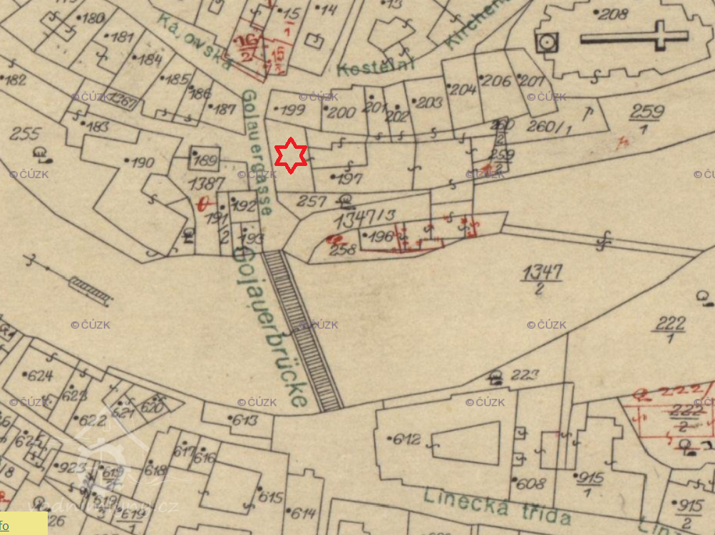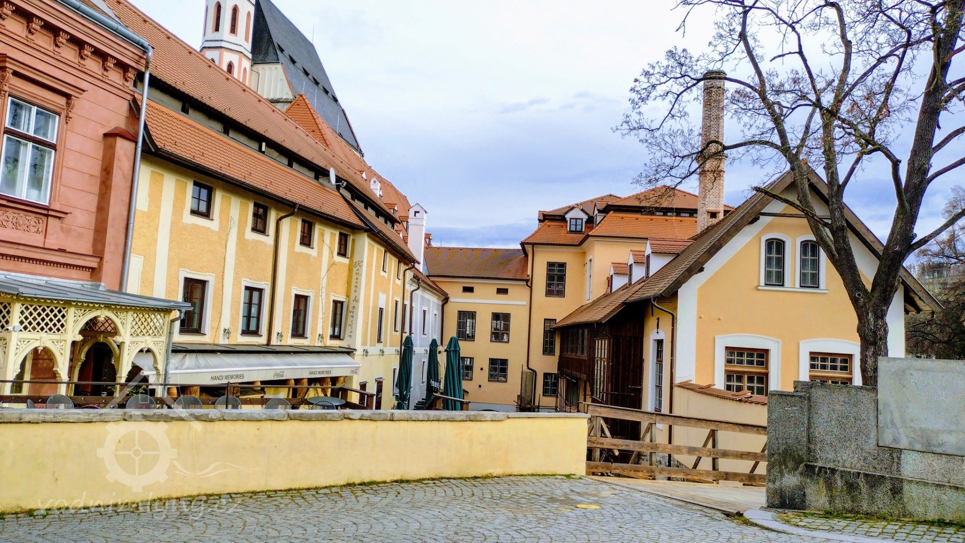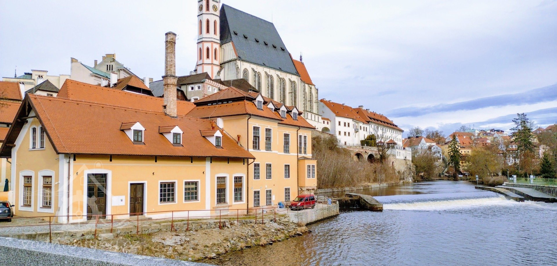 Objekt středověkého původu je zmiňován již v roce 1347, jako mlýn pod kostelem. V letech 1613 – 1614 byl celý areál renesančně přestavěn a provoz změněn na papírnu. Ve druhé polovině 18. století byla fasáda a krov obytného křídla upravena klasicistně. Po zboření Kájovských bran v roce 1881 byla v nově upravené uliční trase postavena historizující patrová budova. Další úpravy především obchodních vstupů byly provedeny na počátku 20. století. Kájovská 58 objekt středověkého původu, ale zřejmě pouze v přízemní části východního křídla valchy zůstaly dochovány zděné konstrukce z renesančního období. V 18. století přistavěn barvířský domek. V letech 1791 – 98 byly rekonstruována valcha. V roce 1869 nově přestavěna barvírna a v roce 1880 znovu upravena. V roce 1881 byla rekonstruována valcha a před rokem 1900 nástavbou 2. patra upravena do současné podoby. Kolem roku 1900 byla postavena západní přízemní část barvírny a trakt nad náhonem.
