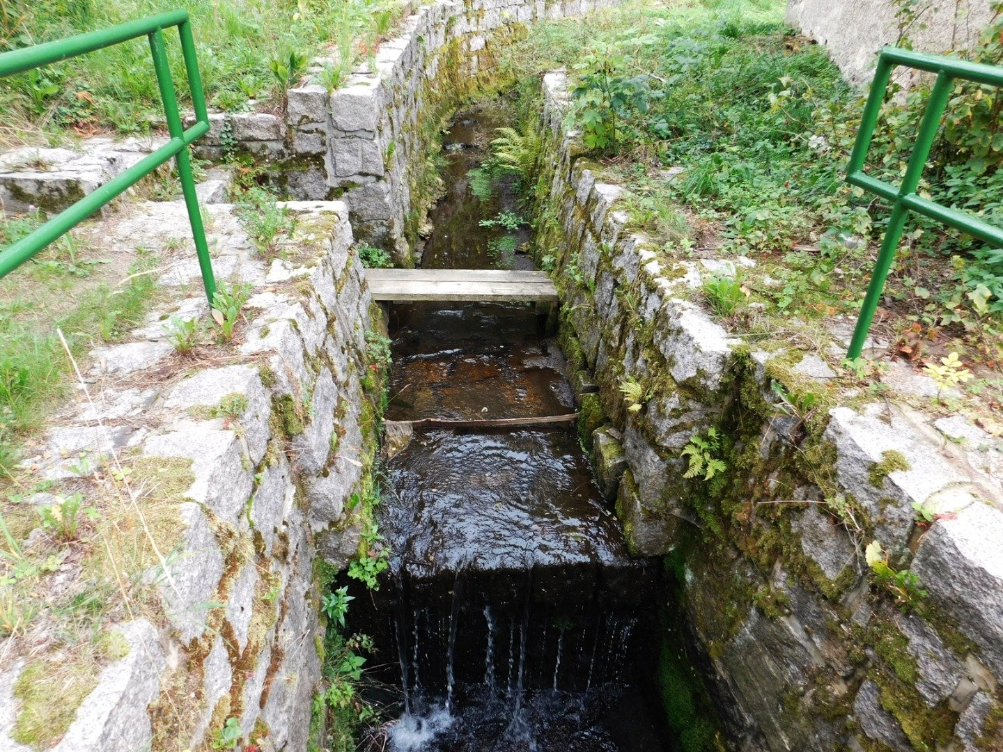 Dolní náhon (odtok) 25 m dlouhý, 80 cm široký.