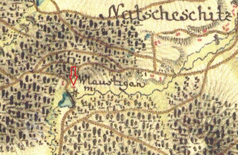 Mlýn je vyobrazen na I. vojenském mapování z let 1764-1768.