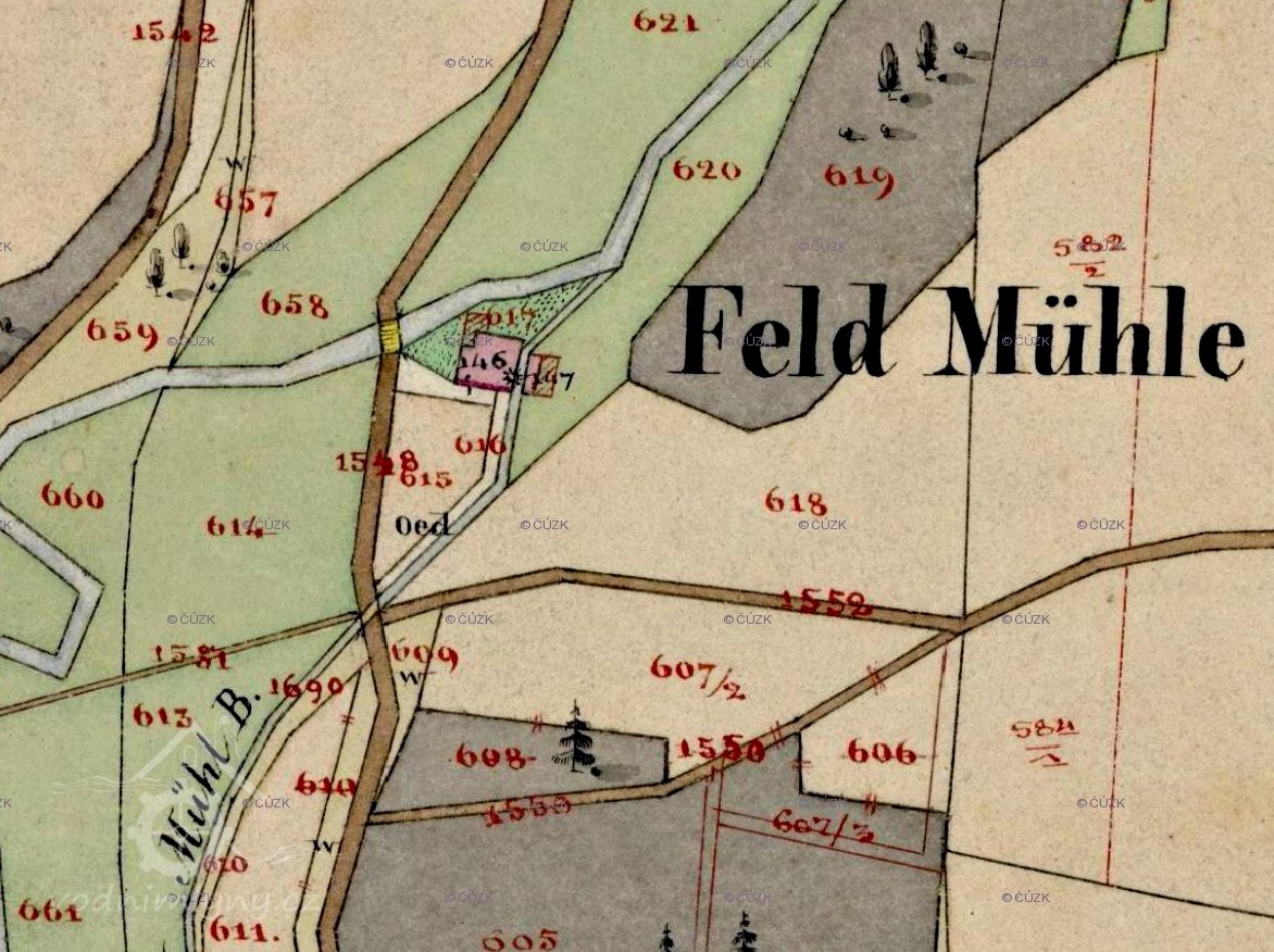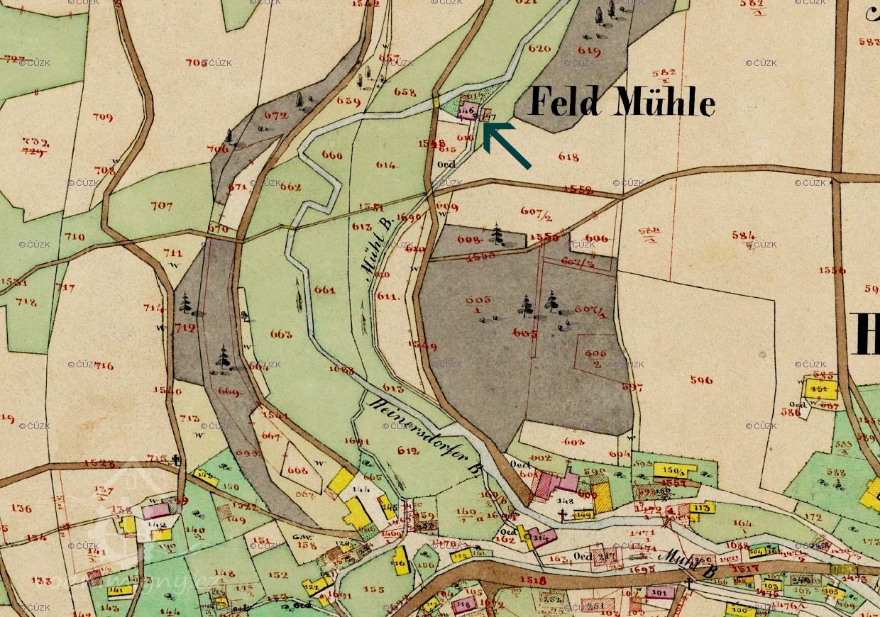 1757 Tereziánský katastr - v Jindřichovicích 2 poddanské mlýny