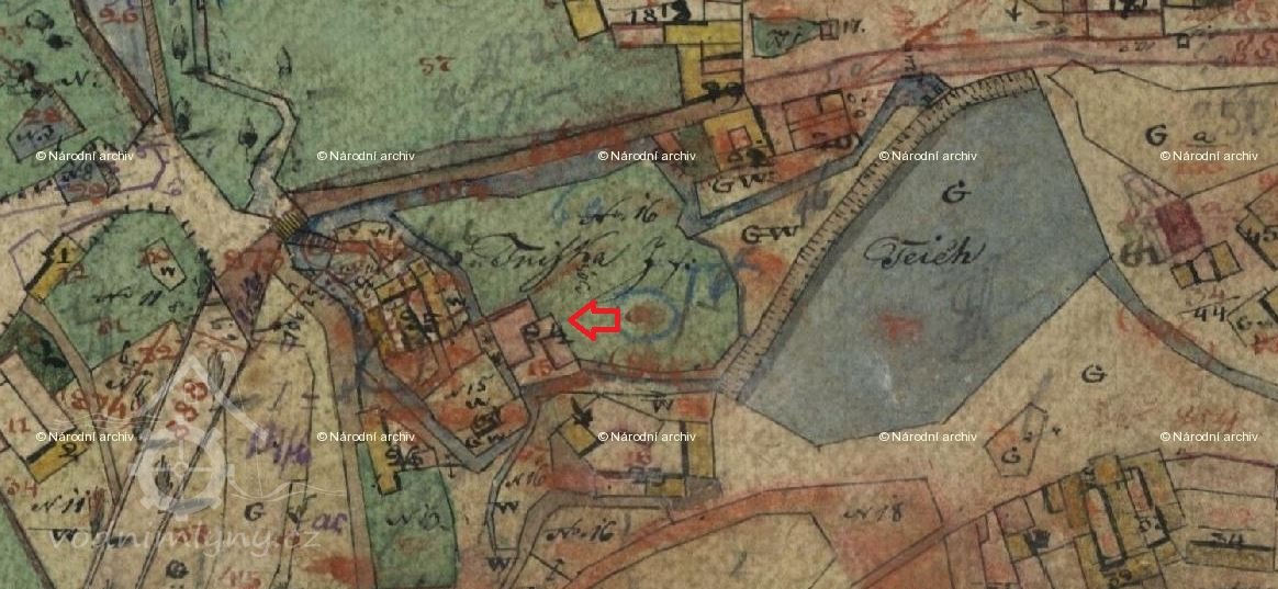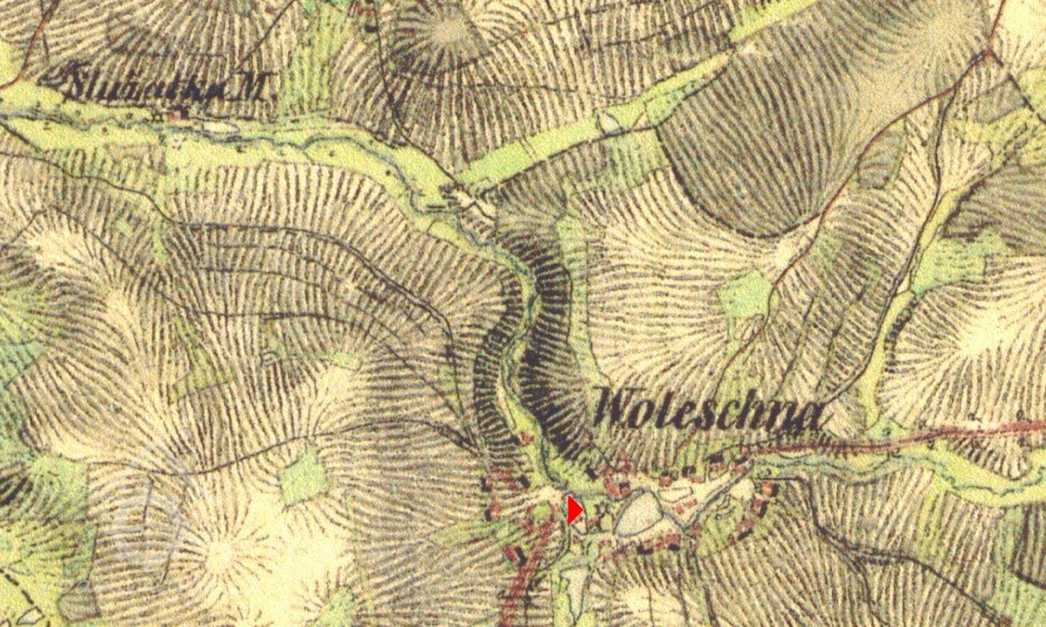 Pro Vodní knihu OÚ Pelhřimov, sepsáno 18.1.1902 (výpis) – Mlýn čp.15 v Olešné a stoupy zvaný Třísků. Držitelé Václav a Kateřina Převorovi, nahoře mlýn čp.25 v Olešné, dole Matěj Kalina v Olešné.