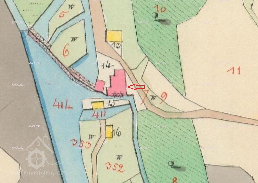 Mlýn je vyobrazen na I. vojenském mapování z let 1764-1768.