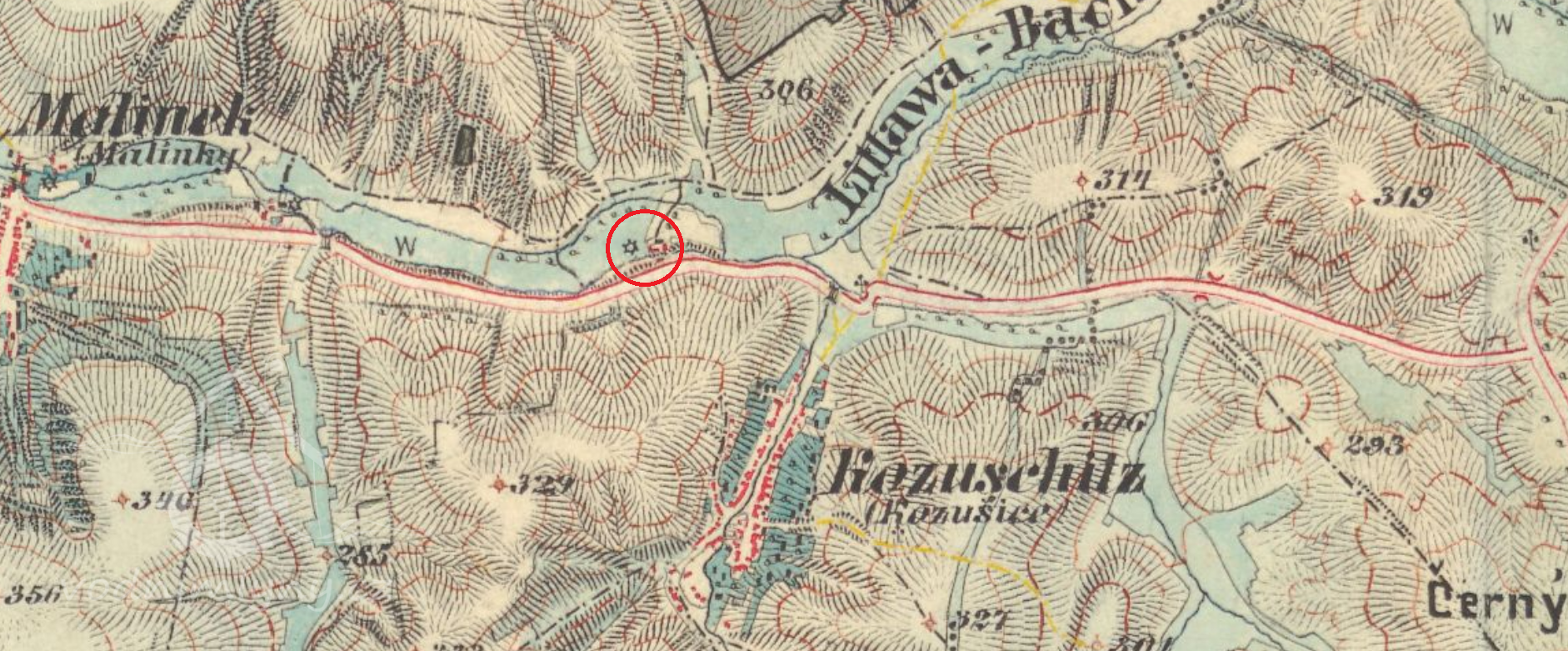 Popis1930: 1 turbína Francis, hltnost 0,215 m3/s, spád 4,9 m, výkon 10,8 HP