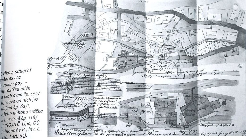 Patrně již od roku 1887 zde spolu s mlýnem pracovala mechanická tkalcovna Josefa Pilze.